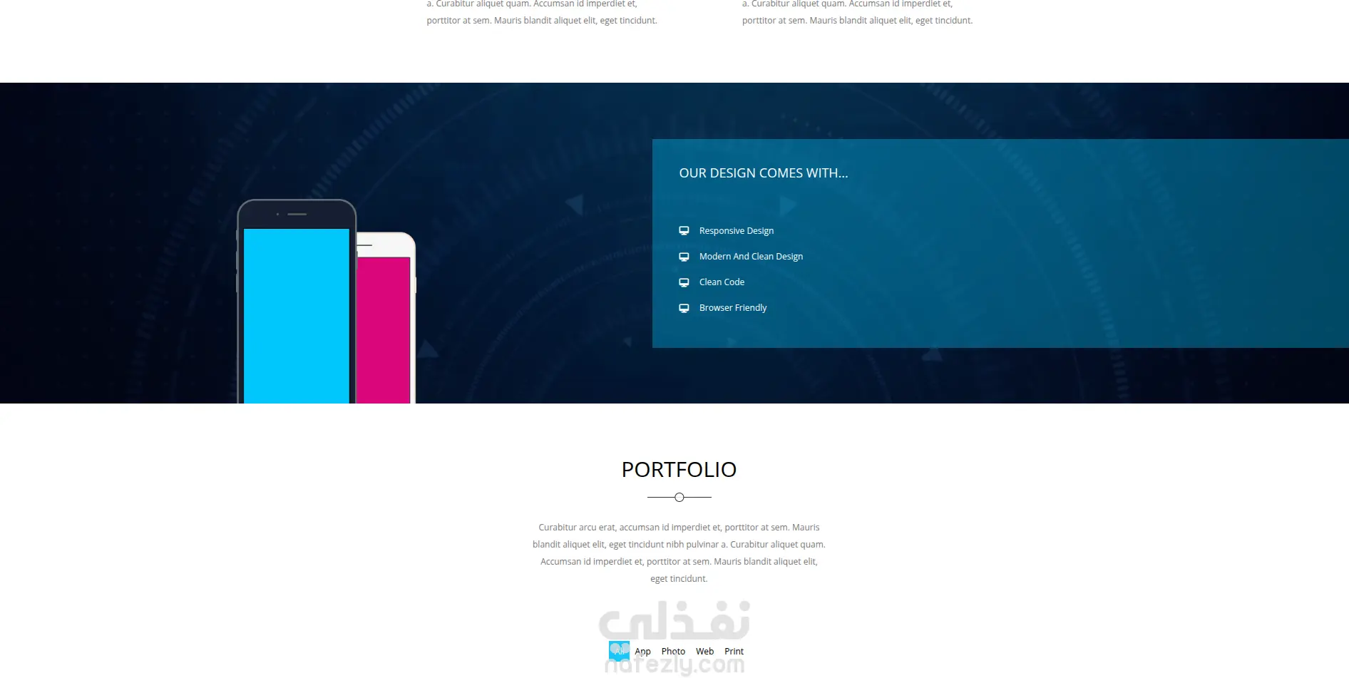 صفحة هبوط landing page باستخدام HTML5, CSS3, JS, React, Bootstrap