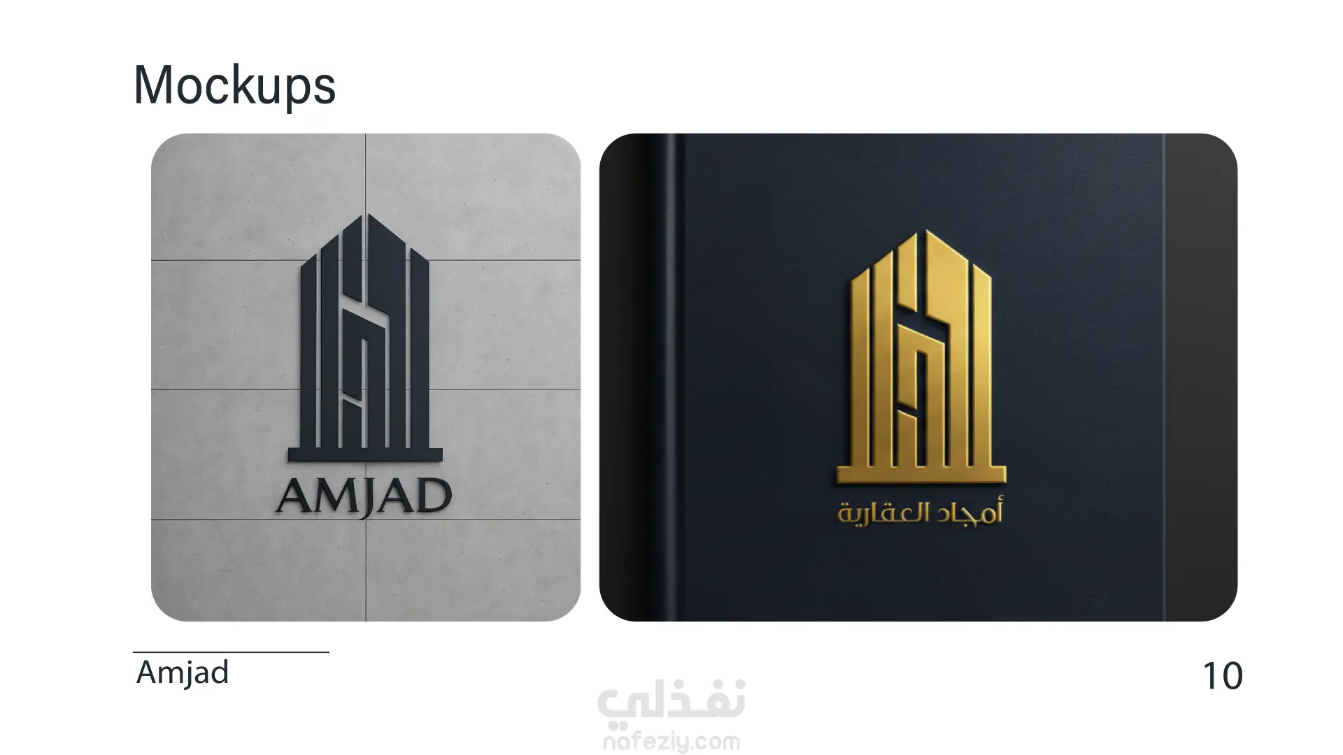 تصميم الهوية البصرية لشركة أمجاد العقارية يشمل تصميم لوغو مبتكر يحاكي شكل المبنى باستخدام حروف كلمة 'أمجاد' بالعربية. كما يشمل المشروع بطاقات العمل، خطاب رسمي، بروشور، وأدوات مكتبية مثل الأقلام والظروف، مع موكابس عالية الجودة تعرض الهوية بشكل احترافي وجذاب. التصميم يعكس الفخامة والاحترافية، مع توزيع متقن للعناصر والتفاصيل التي تبرز العلامة التجارية بشكل واضح." "Visual identity project for Amjad Real Estate featuring an innovative logo design that mimics the shape of a building using the Arabic letters of 'Amjad'. The project also includes business cards, letterhead, brochure, and stationery items like pens and envelopes, with high-quality mockups presenting the identity in a professional and visually appealing way. The design reflects luxury and professionalism, with carefully arranged elements that highlight the brand clearly.