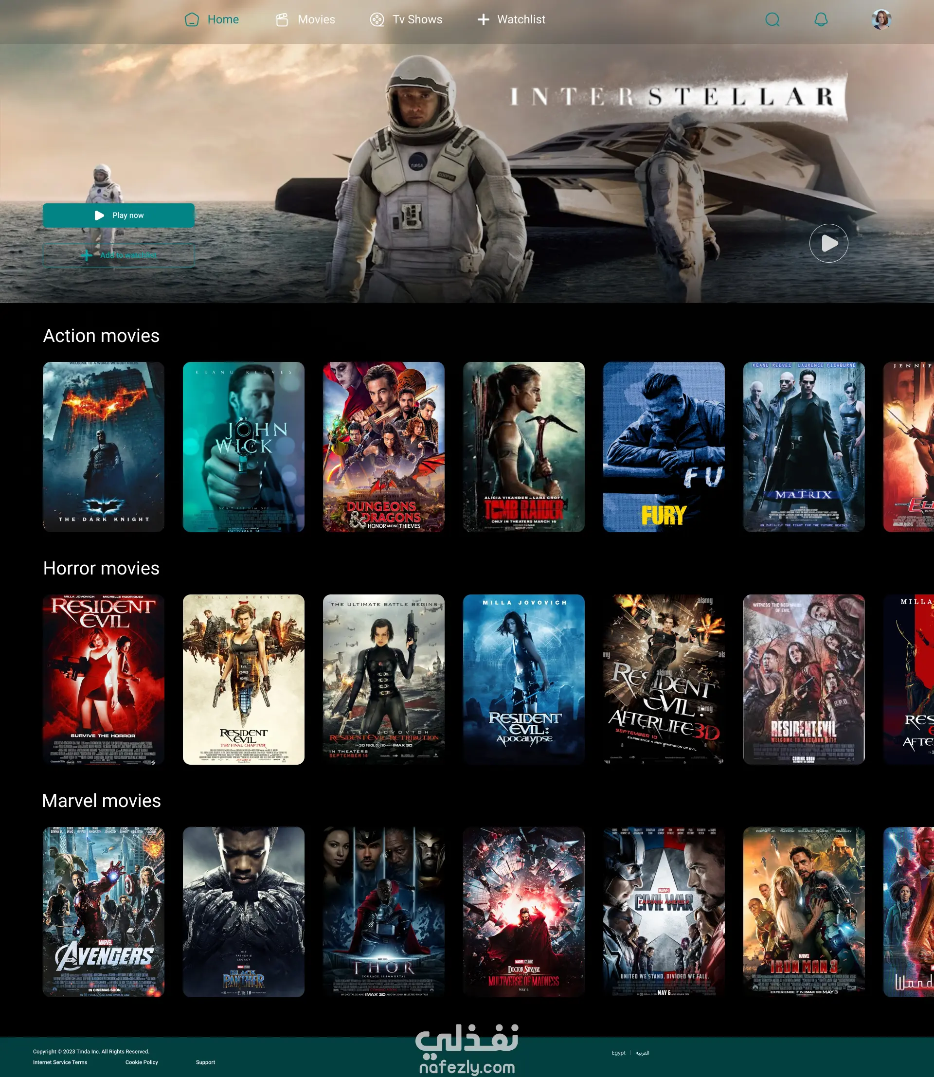 Landing page مكونه من 5 sections ل عرض الافلام تم عمله بواسطه فيجما