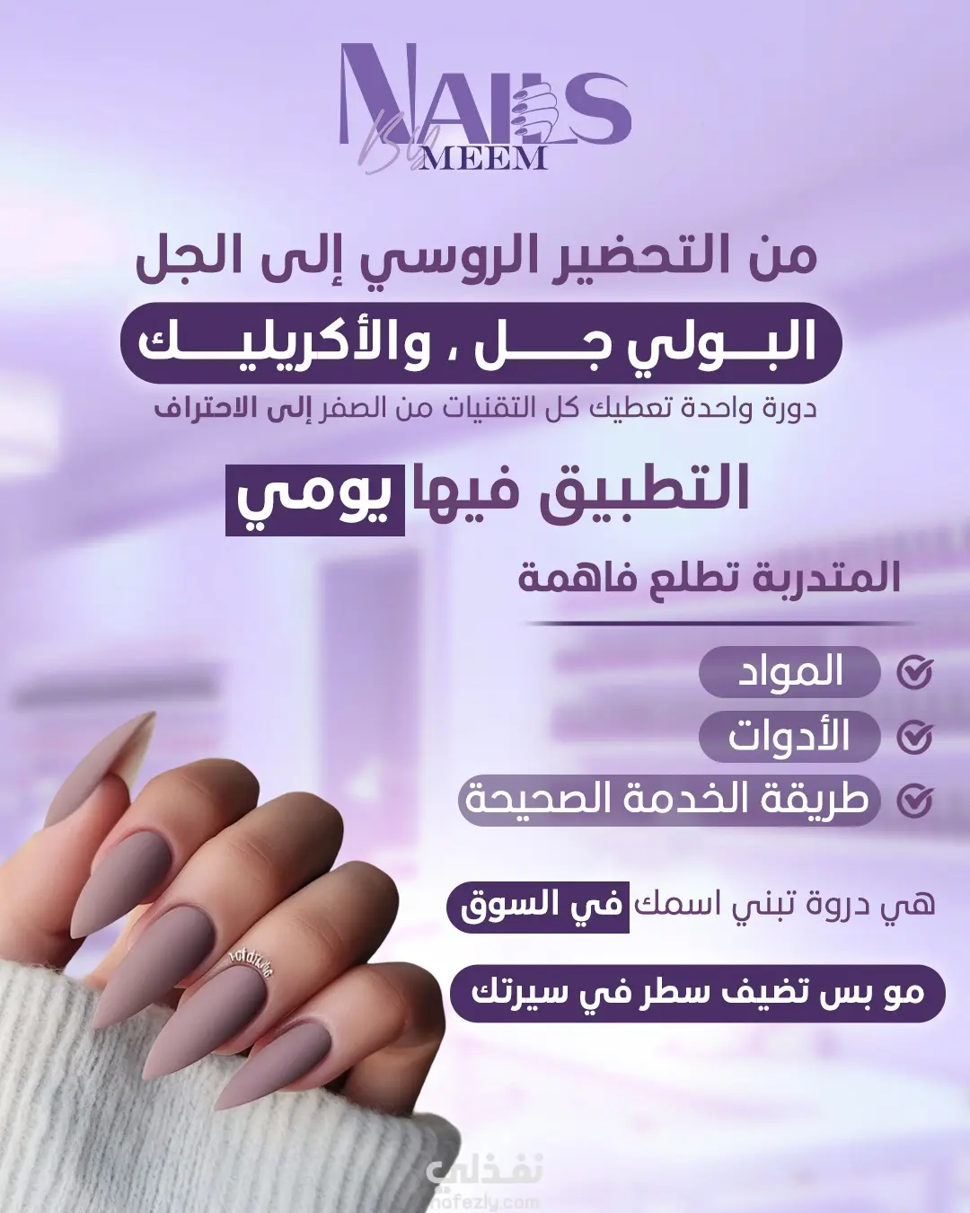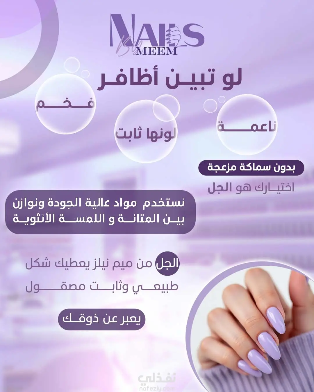 مجموعة من التصميمات الخاصة بصالونات الأظافر تم تنفيذها بأسلوب عصري وجذاب يناسب طبيعة المجال.