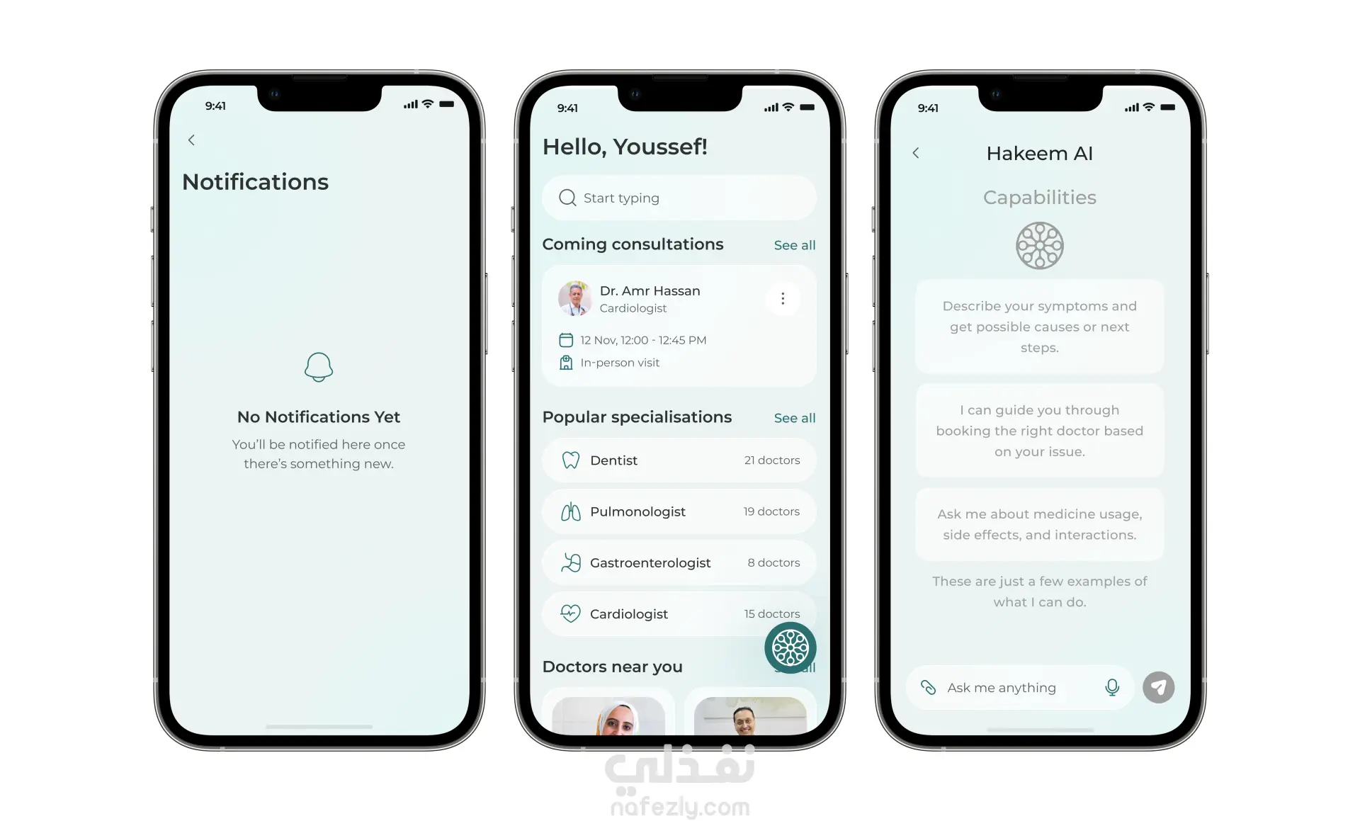 Hakeem is a smart, user-friendly healthcare application designed to make medical care more accessible, efficient, and personal. Whether you're a busy professional needing quick access to trusted doctors, or a parent managing your child’s vaccination schedule, Hakeem streamlines the process with intuitive features like online doctor appointment booking, real-time chat with physicians, vaccination scheduling, and an AI-powered chatbot for instant medical guidance.