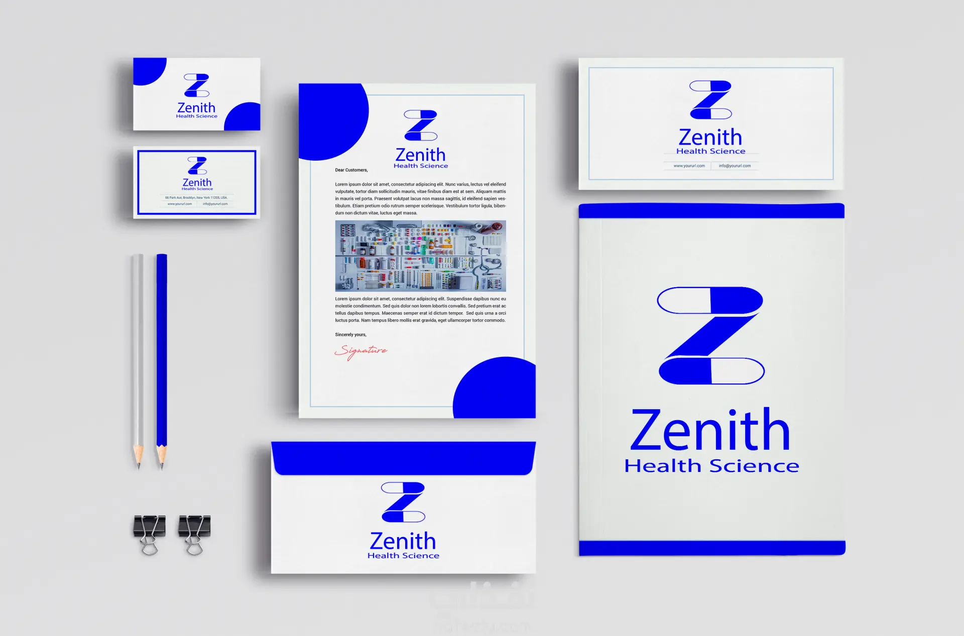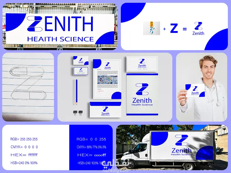 The first letter of the company's name was used, and the upper and lower parts were made in the shape of a capsule. Zalk's goal, once he sees the logo, is to know the company's field of work, especially since it is a completely new company and no one still knows anything about it. The vibrant and eye-catching blue color was used to draw the attention of the target audience to the hair and color. Blue is the color of the clear sky and the beautiful sea. Just looking at it, you feel comfortable. I liked that the color was prominent in the logo, in addition to the uniform white color that has the same effect. These colors are most used in hospitals. The hospital is not devoid of white, which all doctors wear, and blue is the most common color in medical equipment and medicines.