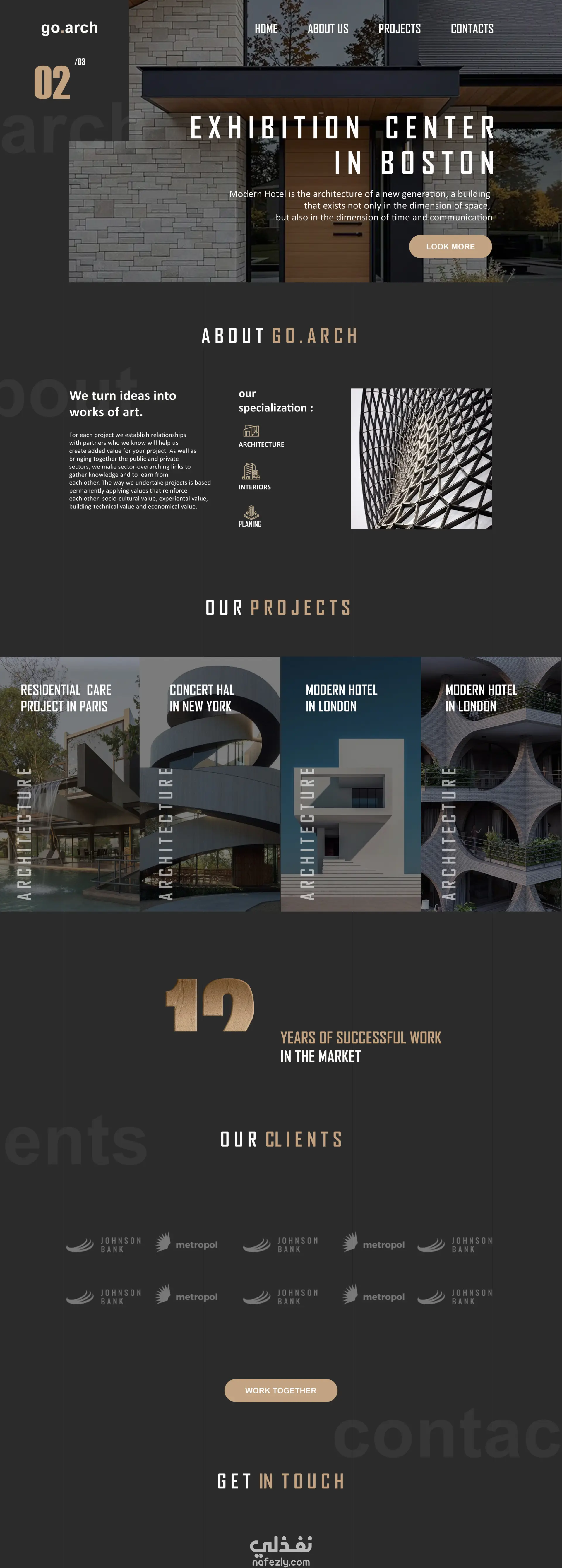 هذا مشروع محاكاه لموقع شركة معمارية متخصصة في تحويل الأفكار إلى أعمال فنية معمارية متميزة. تجمع بين الإبداع والوظيفة لتصميم مساحات فريدة تلبي احتياجات العملاء وتُعبر عن رؤيتهم بلمسة فنية راقية.