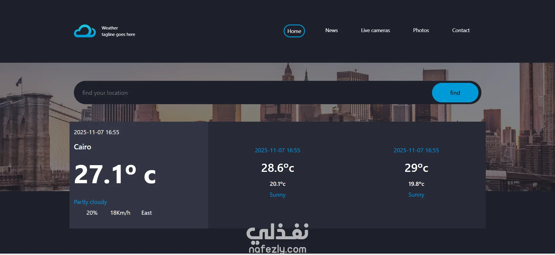 استخدام واجهات برمجية خارجية (API): تم ربط الواجهة بـ API للطقس (مثل OpenWeatherMap) لجلب البيانات بشكل حي وديناميكي.