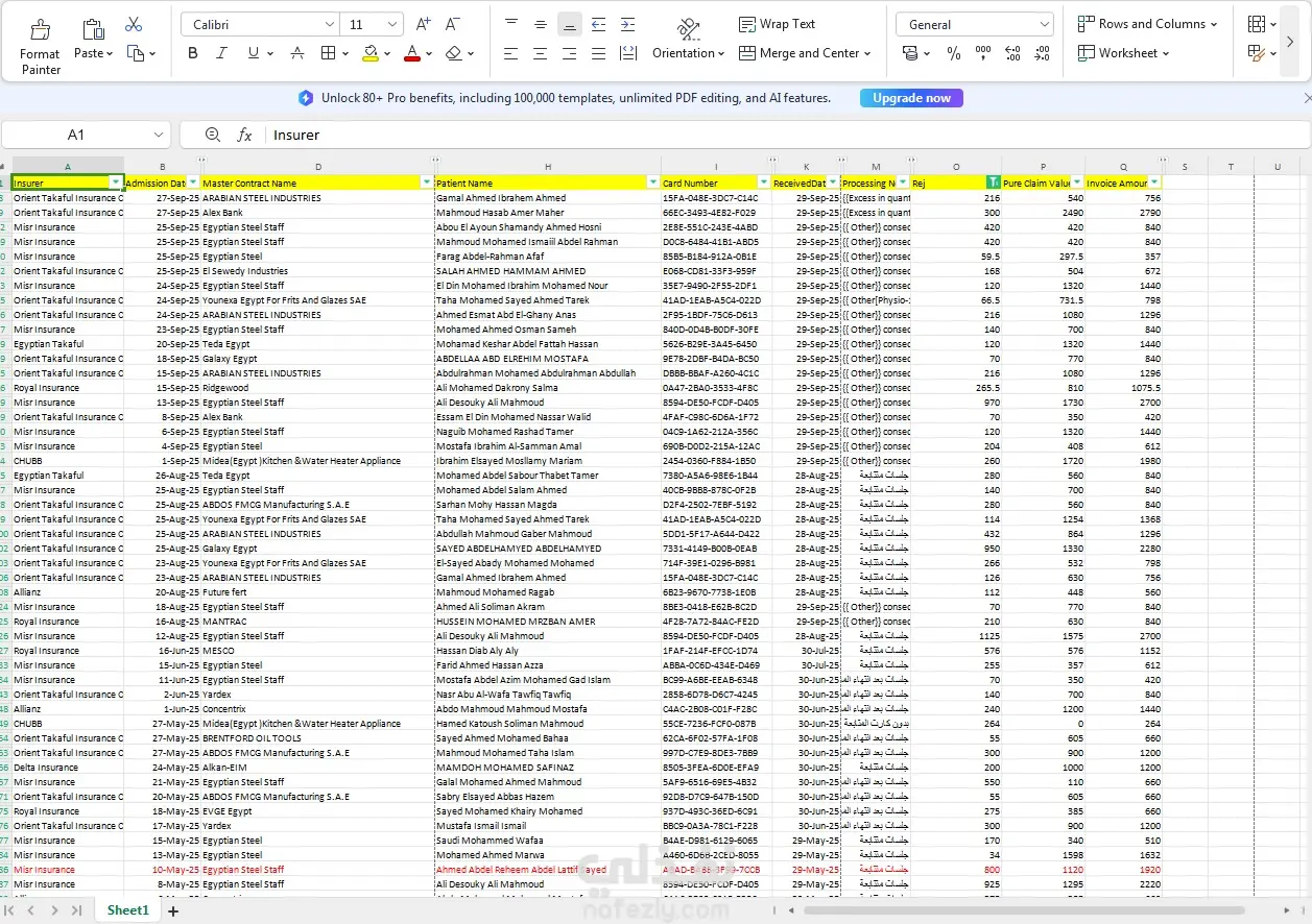 إدخال بيانات وتنسيقها وانشاء قواعد بيانات باستخدام برنامج Excel