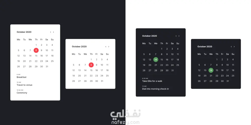تصميم 3 نماذج مختلفة للـ Calendar Widget بأساليب عصرية ومتناسقة