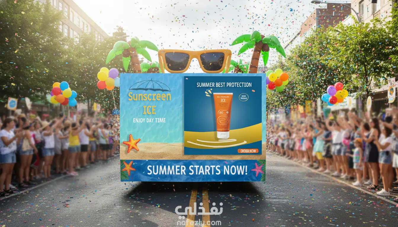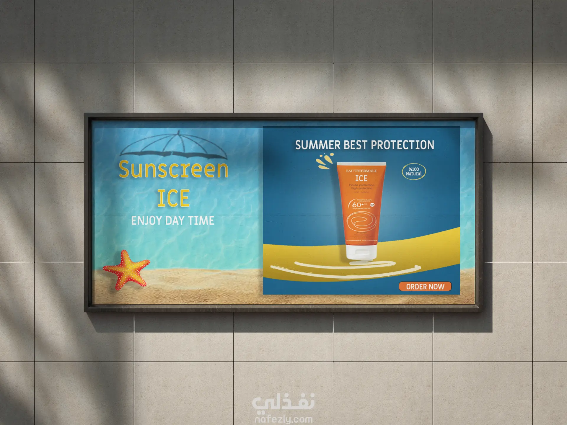 تصميم بوستر لواقي شمس يعرض المنتج بطريقة جذابة