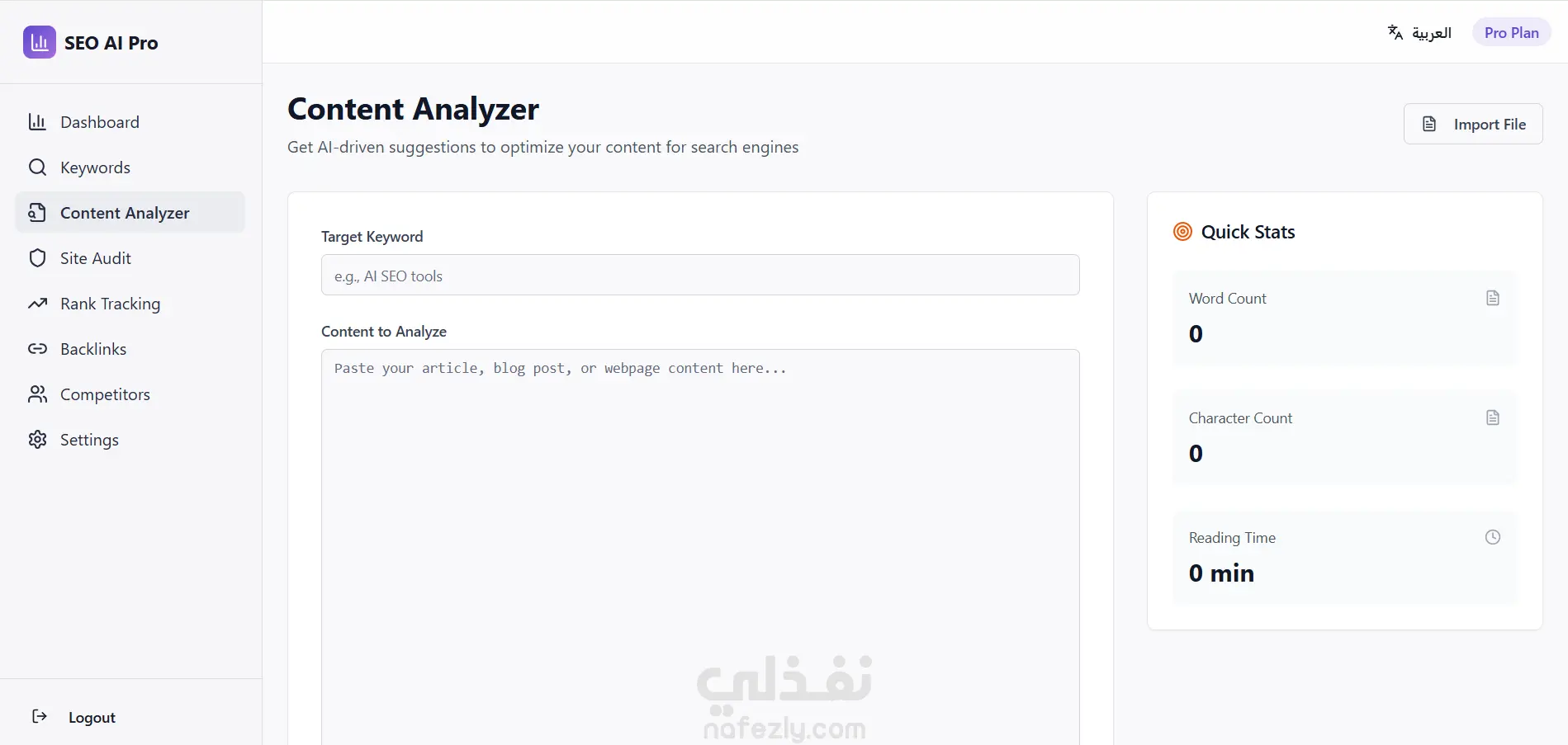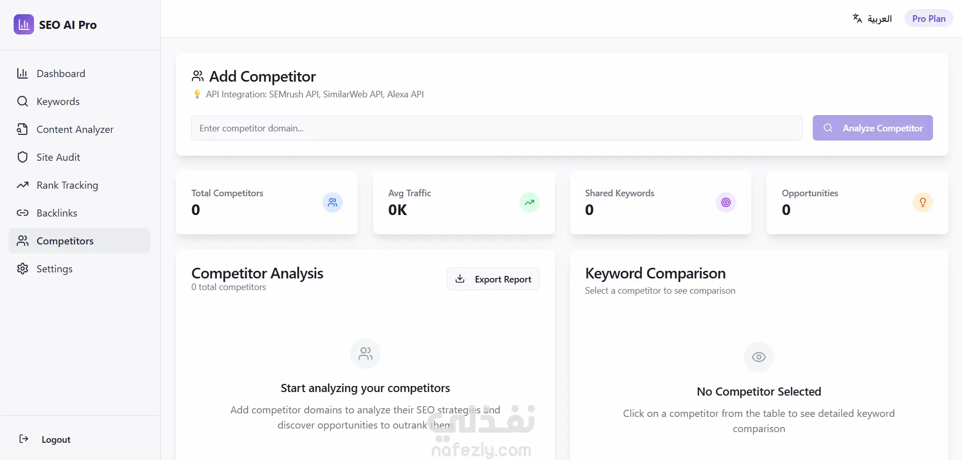 تم تطوير الموقع ليكون خيارا مميزا لفحص ودراسة وتحليل المواقع عن طريق أهم أدوات الذكاء الصناعي في الSEO حيث يتم انشاء حساب المستخدم والاشتراك بالخطة المطلوبة