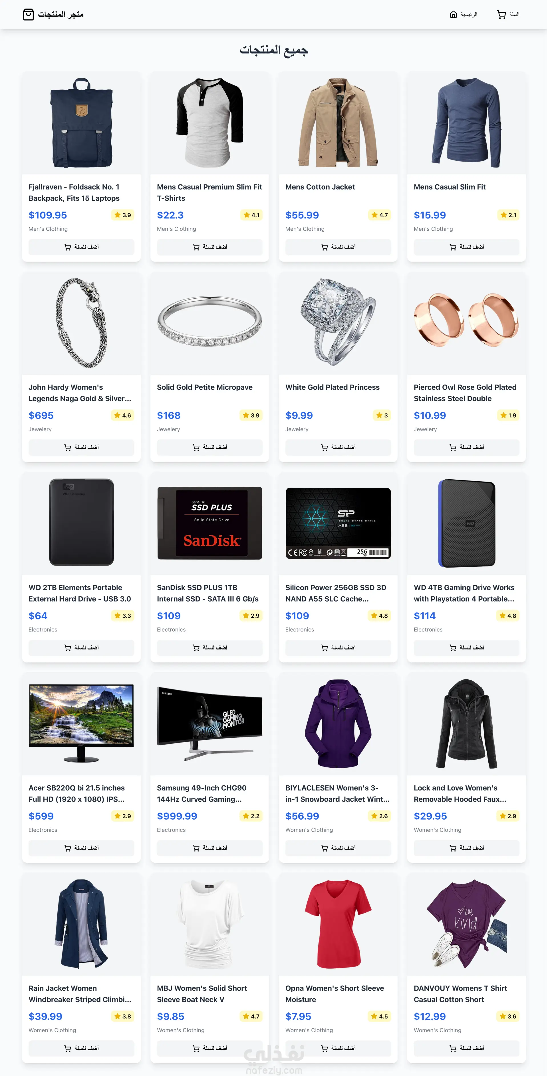 يتضمن المتجر واجهات عصرية مصممة باستخدام Tailwind CSS وأيقونات Lucide React لإضافة لمسة جمالية جذابة. تم التركيز على قابلية التوسع وتنظيم الكود بما يجعل المشروع جاهزًا للتطوير المستقبلي وإضافة مزيد من الميزات مثل: الدفع الإلكتروني، إضافة المنتجات للسلة، لوحة تحكم، وغيرها.