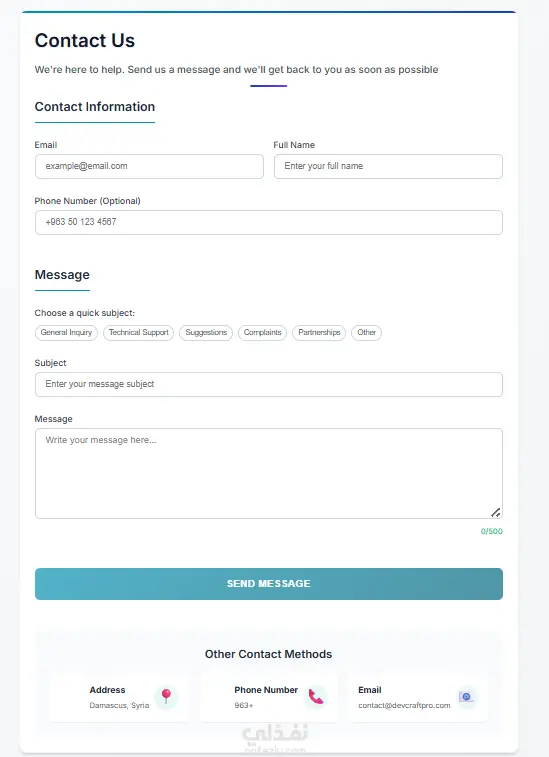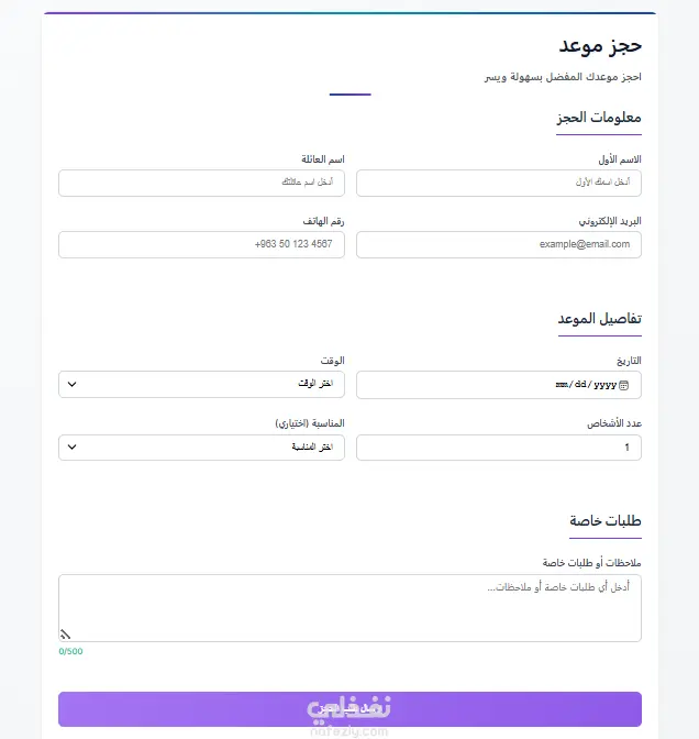 نماذج متعددة تم تصميمها باستخدام Angular باللغتين العربية والانكليزية وهي كالتالي: - فورم تسجيل بسيط - فورم تسجيل مفصل مع العنوان والسكن وتنقل بين المراحل لإنهاء التسجيل - فورم تسجيل الدخول - فورم اتصل بنا - فورم حجز مواعيد مع ملاحظات أهم التقنيات المستخدمة في العمل: - Angular 17.3 - Zone js - React - Tailwind css - Typescript