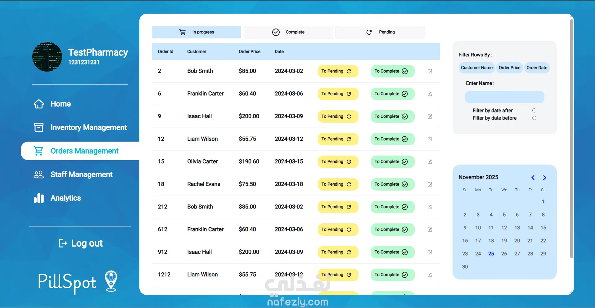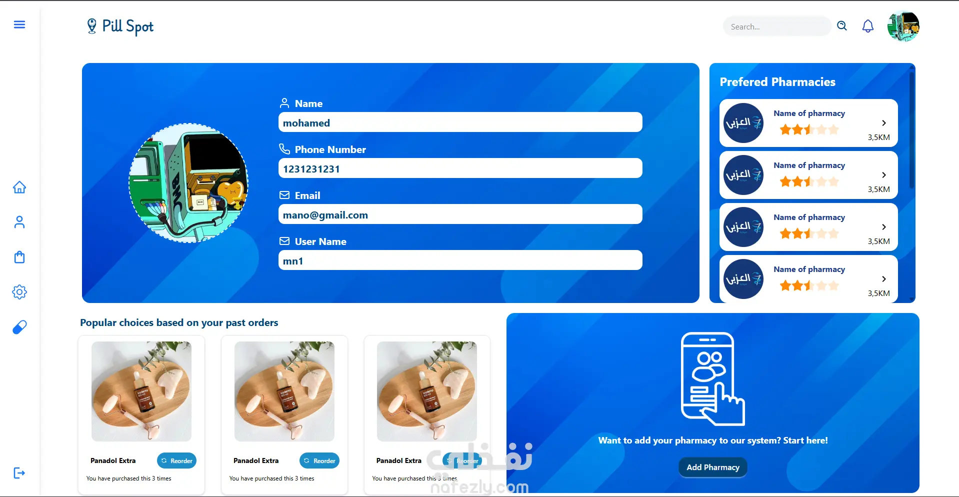 PillSpot هو تطبيق حديث صُمم لتبسيط عملية تسجيل الصيدليات وإدارة بياناتها من خلال واجهة استخدام سلسة وتجربة تفاعلية مريحة. يعتمد المشروع على دمج تقنيات الويب المتقدمة مع خدمات الخرائط والموقع الجغرافي لتقديم حل عملي وموثوق يخدم أصحاب الصيدليات والمستخدمين على حد سواء. يقدّم التطبيق رحلة تسجيل متكاملة تمر بثلاث مراحل واضحة: إدخال البيانات الأساسية، تحديد الموقع الجغرافي على خريطة تفاعلية، ثم مراجعة المعلومات وإرسالها للتأكيد. كل خطوة تمت هيكلتها لتكون انسيابية، مدعومة بعمليات تحقق لحظية لضمان دقة البيانات وسهولة الاستخدام. يتميز PillSpot باستخدامه لتقنيات قوية على مستوى الواجهة الأمامية مثل React وTypeScript وRedux، مما يمنح التطبيق أداءً سريعًا وتجربة سلسة في إدارة الحالة والتنقل بين الصفحات. كما يعتمد على خادم خلفي مبني باستخدام ASP.NET Core، يوفر واجهات برمجية آمنة وموثوقة للتعامل مع البيانات وإدارة الجلسات والمصادقة. العنصر الأبرز في المشروع هو نظام الخرائط التفاعلي المعتمد على MapLibre وOpenStreetMap، حيث يمكن للمستخدم تحديد موقع الصيدلية مباشرة بالنقر على الخريطة. يتم تحليل الإحداثيات عبر OpenCage Geocoding ليتم تحديد المدينة والمحافظة تلقائياً، مما يجعل خطوة تحديد الموقع دقيقة وسهلة. على مستوى الحماية، تم تطبيق آليات متقدمة مثل CSRF Protection، وإدارة الجلسات، واعتراض الطلبات عبر Axios Interceptors لإرسال الرموز الأمنية تلقائيًا والتعامل مع انتهاء الجلسات بطريقة سلسة. كما يدعم التطبيق تعدد اللغات بالكامل مع إمكانية التبديل بين العربية والإنجليزية دون إعادة تحميل الصفحة. تم بناء PillSpot ببنية منظمة تسمح بالتوسع المستقبلي وإضافة ميزات جديدة بسهولة، مع توزيع واضح للمكونات، الصفحات، الخدمات، وإدارة الحالة. التركيز الأساسي كان على تقديم تطبيق عملي، قابل للتطوير، ويمنح المستخدم تجربة جديرة بالتطبيقات الاحترافية. يمثل هذا المشروع نموذجًا لدمج واجهات مستخدم حديثة مع خدمات خارجية وعمليات خلفية آمنة، مما يجعله إضافة قوية لأي ملف مهني يعكس مهارات قوية في تطوير تطبيقات الويب المتقدمة.