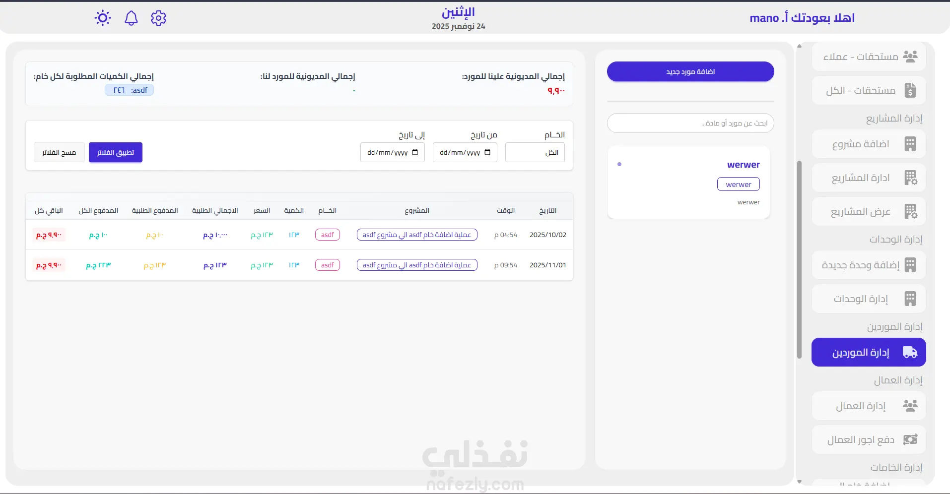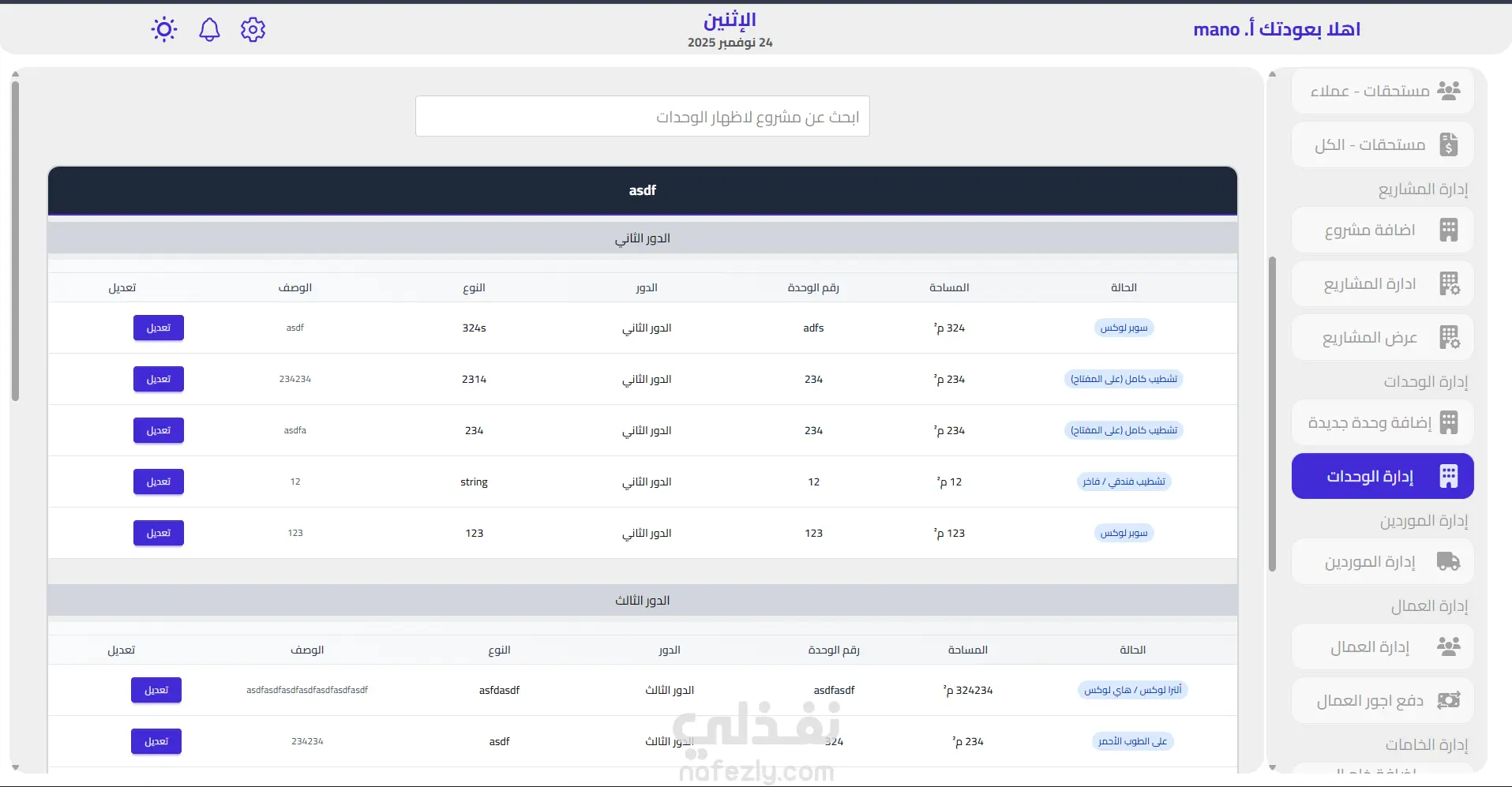 نظام إدارة المشاريع العقارية E3mar هو منصة شاملة لإدارة مشاريع التطوير العقاري والبناء، مصممة خصيصاً للسوق العربي. المميزات الرئيسية: ️ إدارة المشاريع إنشاء وإدارة مشاريع البناء والتطوير العقاري تتبع تفاصيل كل مشروع بشكل منظم إدارة الوحدات العقارية تسجيل الوحدات السكنية والتجارية ضمن كل مشروع تتبع حالة الوحدات (متاحة، مباعة، قيد الإنشاء) إدارة تفاصيل الوحدة (المساحة، الموقع، السعر) نظام المبيعات والدفعات تسجيل عمليات بيع الوحدات للعملاء نظام الدفعات بالتقسيط المرن تتبع حالة كل دفعة (مدفوعة أو معلقة) دعم الدفع من حسابات البنك أو المحافظ النقدية إدارة العملاء حفظ بيانات العملاء (البطاقة الشخصية، رقم الجوال) التواصل المباشر عبر WhatsApp تتبع شامل لعمليات شراء العميل إدارة المخزون تسجيل المواد والإمدادات البناء تتبع المخزون الموجود إدارة الموردين والعقود إدارة المحافظ والحسابات محافظ مالية لتتبع الأموال حسابات بنكية متعددة سجل شامل للمعاملات المالية الأمان والمصادقة نظام تسجيل الدخول الآمن باستخدام JWT إدارة موظفي المشروع والصلاحيات التقارير والتحليلات سجل تفصيلي لجميع العمليات تحليل البيانات المالية والعقارية