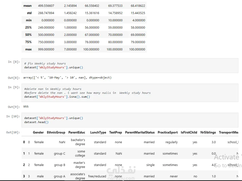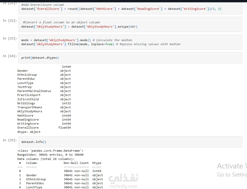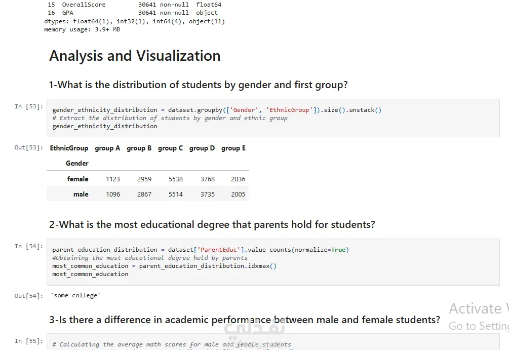 قمت بتنفيذ مشروع تحليل بيانات متكامل خاص بالطلاب بهدف فهم العوامل المؤثرة على الأداء الدراسي داخل المؤسسة التعليمية. يعتمد المشروع على تنظيف البيانات ومعالجتها وتحويلها إلى مؤشرات ورؤى واضحة تساعد الإدارة أو الجهة التعليمية على اتخاذ قرارات مبنية على البيانات. يشمل المشروع استخراج أهم المؤشرات مثل: متوسط الدرجات العامة ومستوى التحصيل الأكاديمي. نسبة الطلاب المتفوقين والطلاب منخفضي الأداء. معدل الغياب وتأثيره المباشر على النتائج. توزيع الأداء حسب الصف الدراسي أو المادة. كما يتضمن المشروع تحليلات تفصيلية حسب: العمر، الجنس، والحالة الاجتماعية. الخلفية التعليمية أو الاجتماعية المواد أو الأقسام الأكثر تأثرًا بانخفاض الأداء. ويقدم المشروع رسوماً بيانية توضح الأنماط داخل البيانات بشكل واضح وسهل الفهم، مع إمكانية عرض النتائج حسب المادة أو المرحلة الدراسية يساعد هذا التحليل في تحديد أهم العوامل المؤثرة على أداء الطلاب، والتعرف على الفئات الأكثر احتياجًا للدعم الأكاديمي، مما يساهم في تحسين جودة التعليم وتطوير الخطط الأكاديمية داخل المؤسسة.