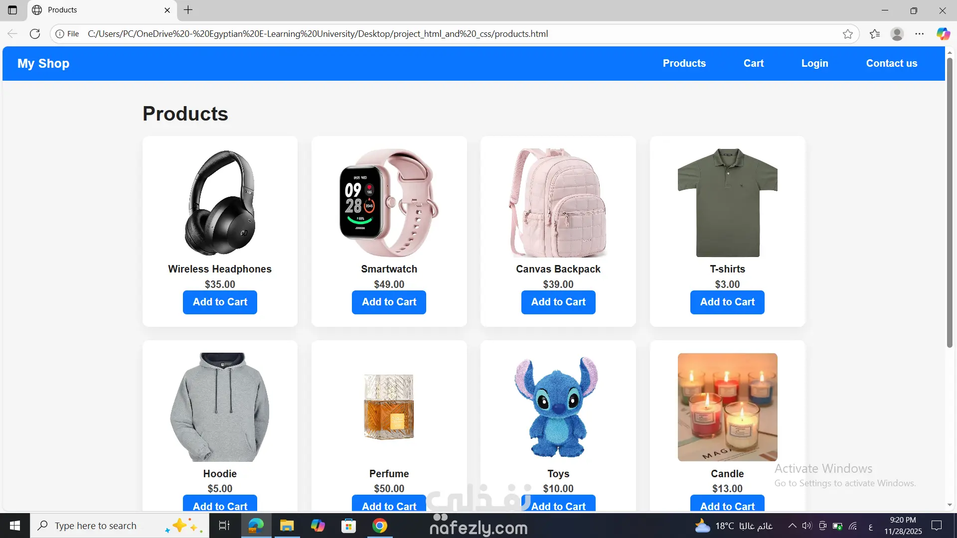 يعكس المشروع مبادئ التصميم الحديثة في مجال التجارة الإلكترونية من حيث تنظيم المحتوى، وضوح المعلومات، وسهولة الوصول إلى الصفحات المختلفة مثل المنتجات، السلة، وتواصل معنا.