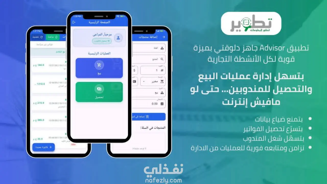 تطبيق 'Adviosr' مخصص لتنظيم وإدارة عمليات المبيعات للشركات، حيث يوفّر تجربة سلسة وفعّالة لمندوبي المبيعات. يتيح التطبيق إنشاء الفواتير الجديدة بسهولة، مع إمكانية تعديلها ومراجعتها في أي وقت، إضافة إلى خيار طباعتها مباشرة بصيغة PDF. يدعم التطبيق العمل في وضع الاتصال بالإنترنت أو بدونه؛ حيث يتم تخزين الفواتير محليًا عند عدم توفر الاتصال، ثم يقوم تلقائيًا بإعادة المزامنة مع النظام فور عودة الإنترنت، مما يضمن عدم فقدان أي بيانات واستمرار سير العمل بسلاسة. يمثّل Advisor الحل الأمثل للشركات التي تسعى إلى تحسين كفاءة مندوبيها، وتبسيط عمليات البيع، ورفع مستوى الدقة والتنظيم في إدارة الفواتير.