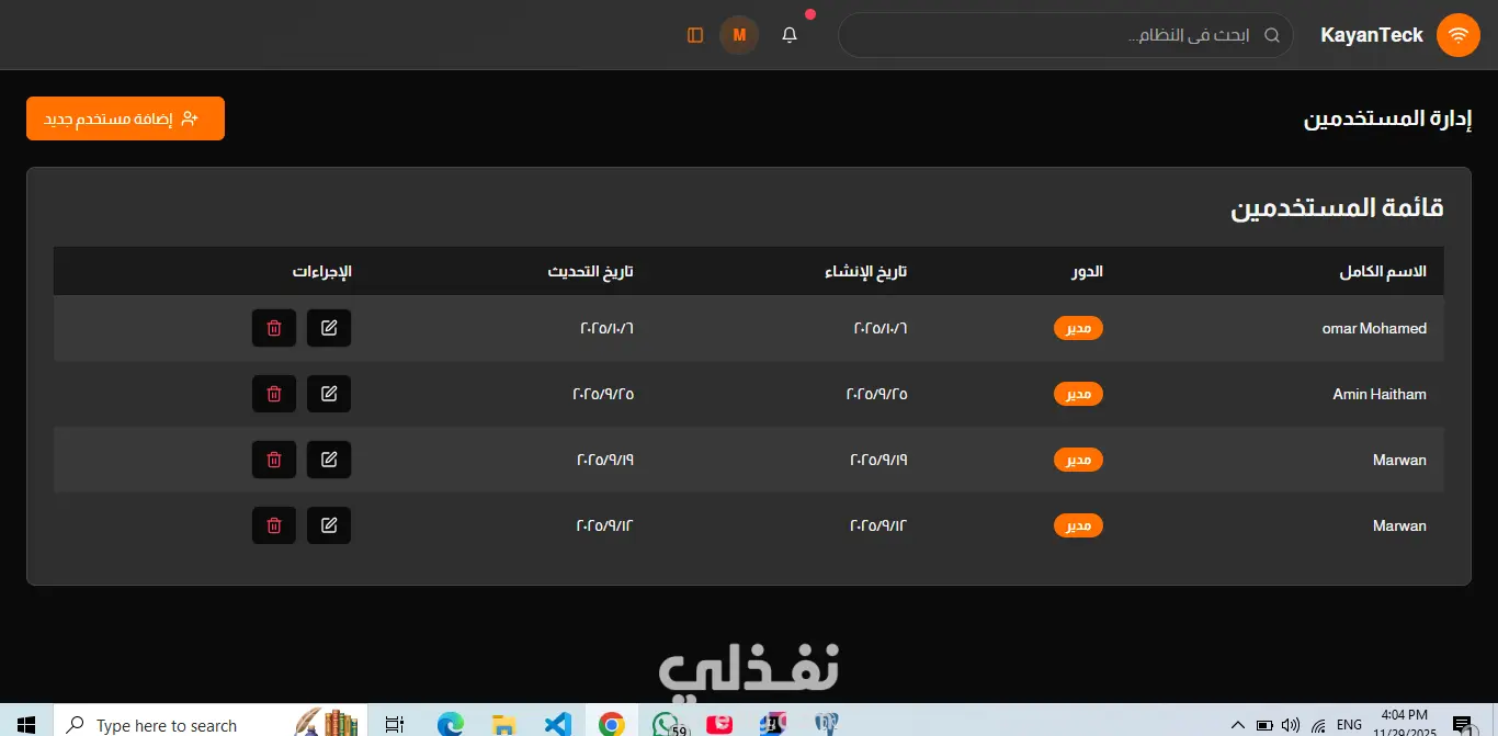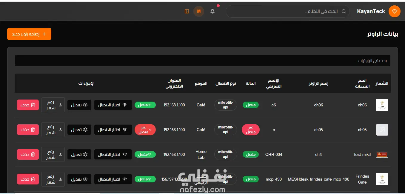 هذا المشروع عبارة عن تطبيق ويب كامل (Full-Stack) متكامل لإدارة أجهزة MikroTik والخدمات الشبكية المرتبطة بها. يعتمد على واجهة أمامية حديثة باستخدام React لتوفير تجربة استخدام سلسة، وعلى واجهة خلفية قوية باستخدام Node.js لمعالجة الاتصالات مع أجهزة MikroTik بشكل آمن، مع تجاوز القيود التي تواجه المتصفح في الاتصال مباشرة بالأجهزة. يتضمن التطبيق مجموعة واسعة من المميزات، مثل: تسجيل دخول المستخدمين وإدارة الحسابات لوحة تحكم شاملة لعرض الإحصائيات والبيانات المهمة إدارة الرصيد (Balance Management) إدارة المستخدمين (User Administration) التعامل مع الملفات متابعة المبيعات (Sales Tracking) عرض إحصائيات الاستخدام اليومية إعداد الأجهزة Router Configuration واختبارها توليد بطاقات الفواتشر Voucher Cards دليل استخدام داخل التطبيق (User Guide) أما الواجهة الخلفية (Backend)، فهي توفر مجموعة من واجهات API الآمنة التي تمكّن من: اختبار الاتصال بجهاز MikroTik جلب معلومات النظام System Information إدارة مستخدمي الـ Hotspot تنفيذ أوامر مخصّصة على جهاز MikroTik باختصار، يوفر المشروع حلاً احترافيًا ومتكاملاً للتحكم بأجهزة MikroTik من خلال منصة ويب حديثة وآمنة وسهلة الاستخدام. This project is a comprehensive full-stack web application for managing MikroTik routers and related network services. It features a modern React-based frontend for user interaction and a robust Node.js backend API that securely handles connections to MikroTik devices, bypassing browser limitations. The application includes features for user authentication, dashboard overview, balance management, user administration, file handling, sales tracking, daily usage statistics, router configuration and testing, voucher card generation, and a user guide. The backend provides secure API endpoints for router connection testing, system information retrieval, hotspot user management, and custom command execution on MikroTik devices.