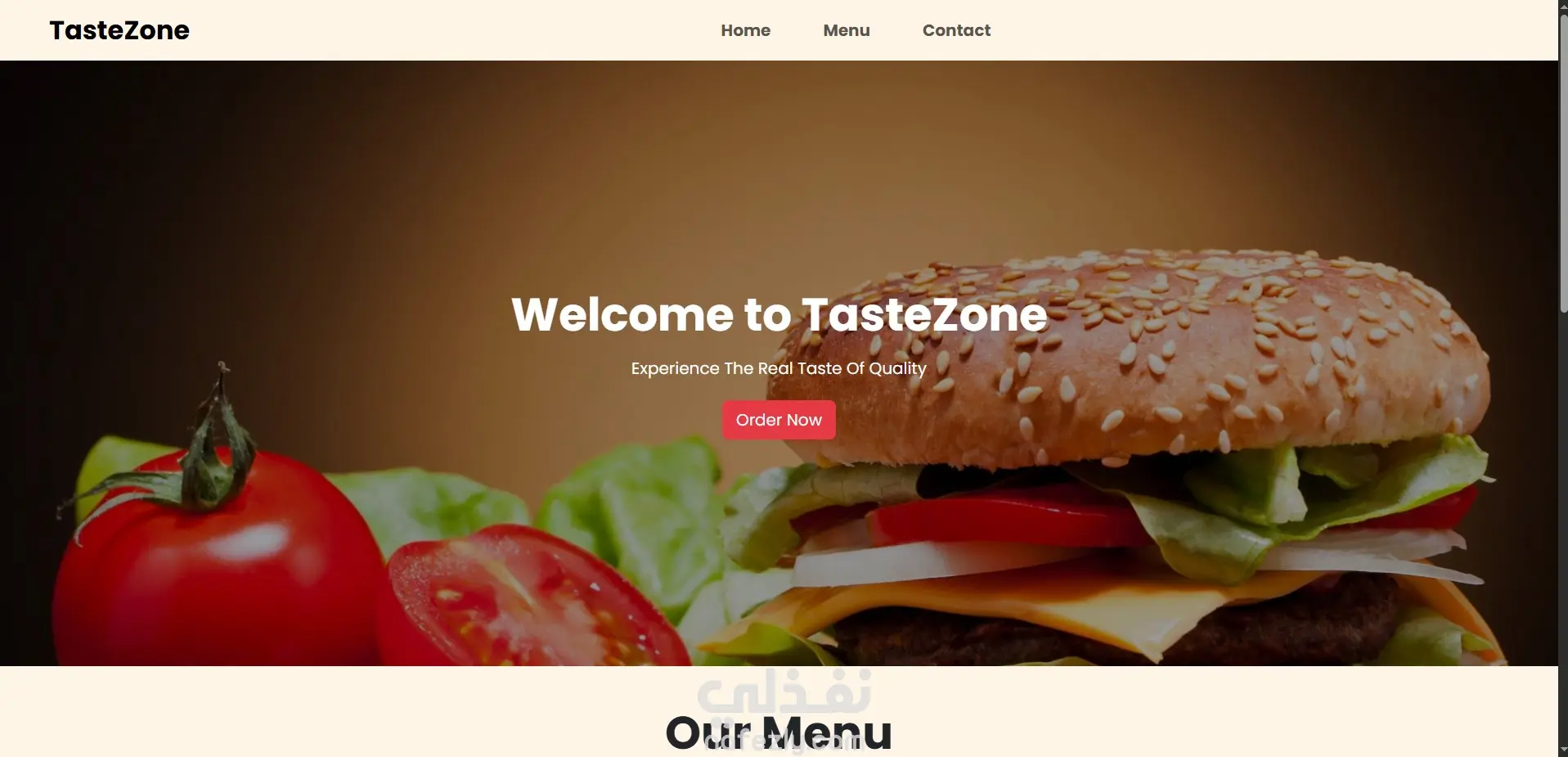 تايست زون (TasteZone) هو مشروع صفحة هبوط بسيطة قمت بتطويرها بهدف عرض المهارات الأساسية في بناء واجهات المستخدم وتصميم صفحات الهبوط. ركزت في هذا العمل على إنشاء هيكل منسق وواضح، مع استخدام ألوان هادئة وتخطيط متجاوب يعمل على مختلف الأجهزة.