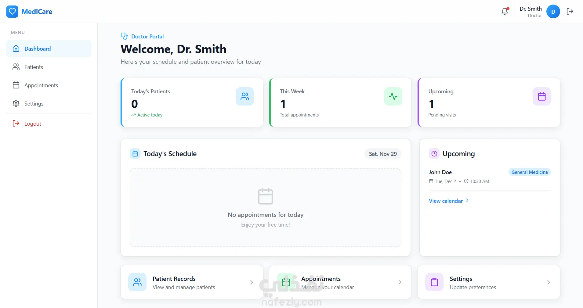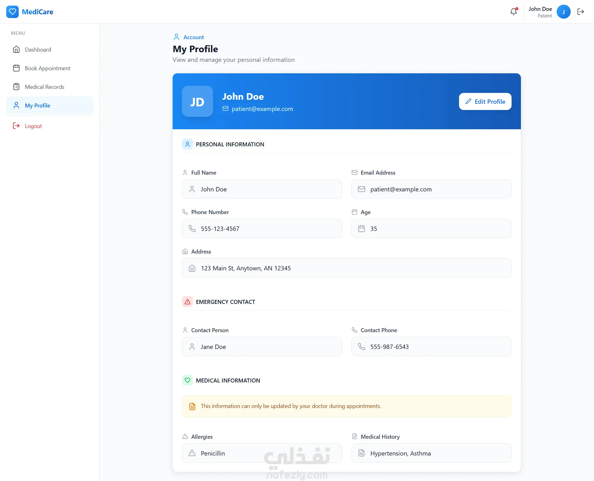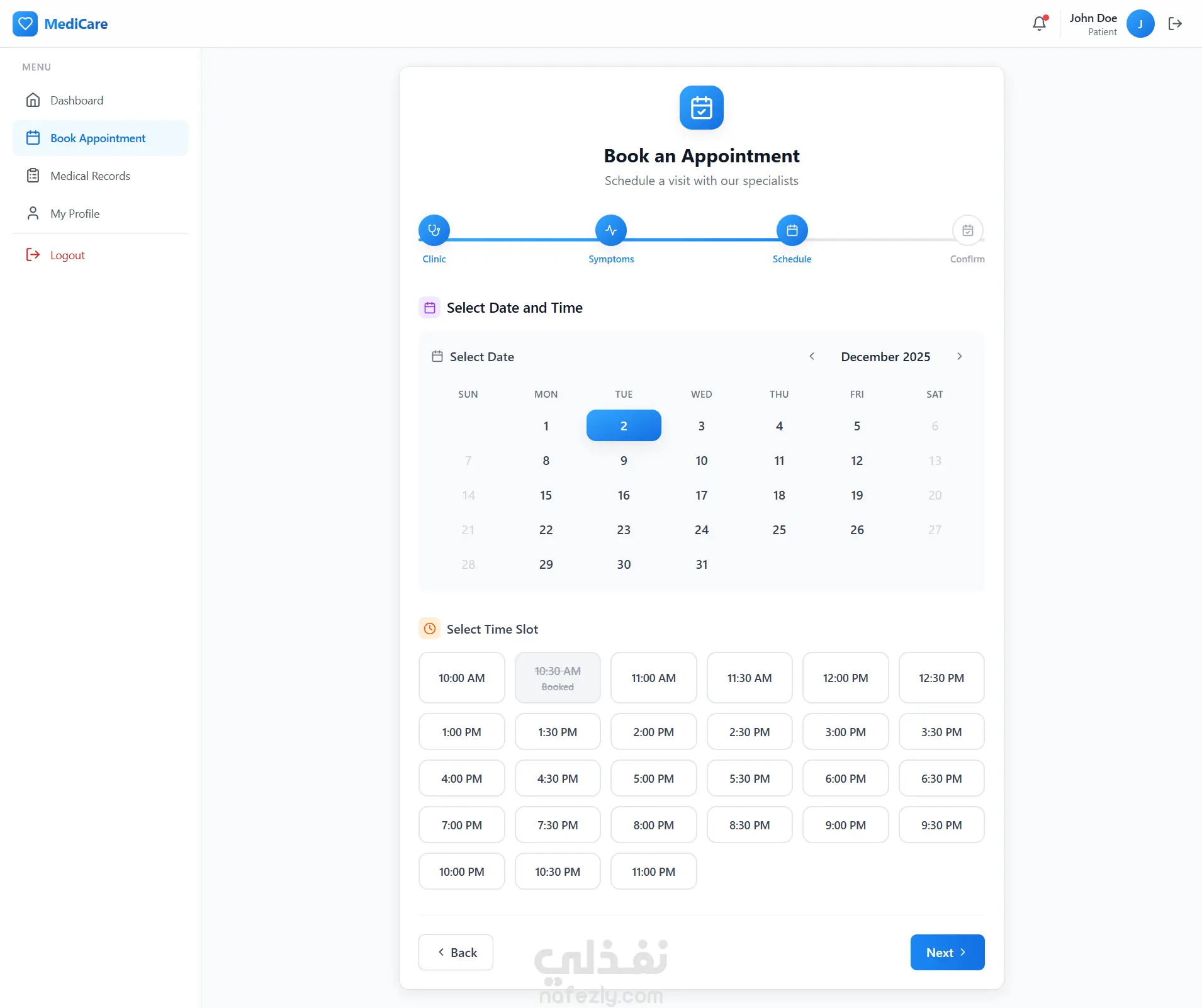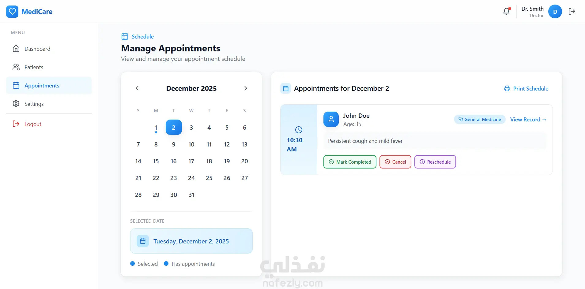 تطوير نظام إدارة العيادات الطبية باستخدام NodeJS , React لحجز المواعيد وإدارة المرضى.