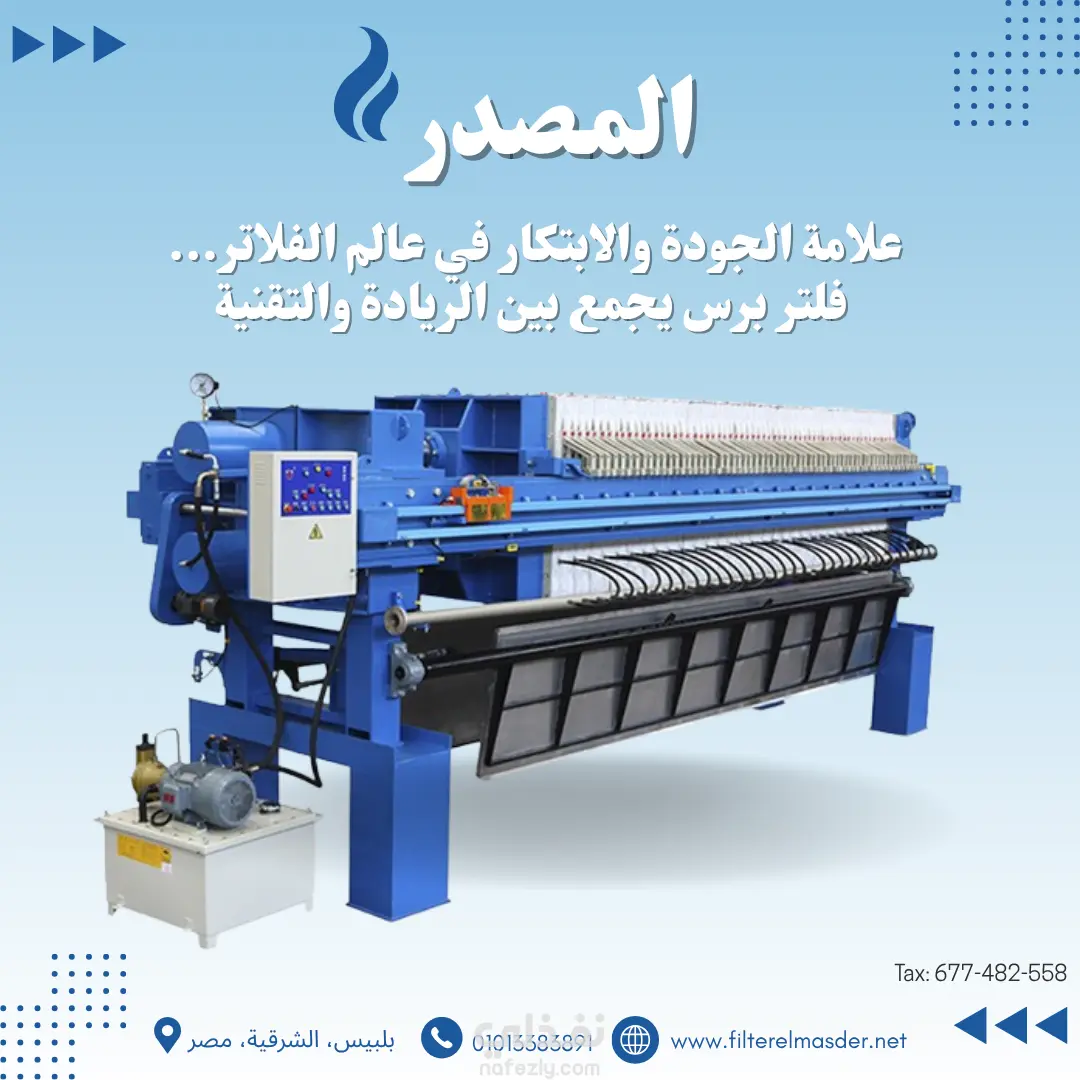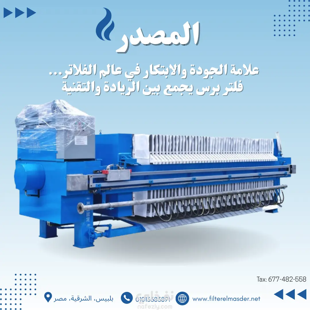 تصميم بوستر إعلاني احترافي لشركة المصدر للفلترات الصناعية هذا العمل عبارة عن تصميم بوستر دعائي يعرض منتج Filter Press الخاص بشركة المصدر المتخصصة في حلول الفلترة الصناعية.