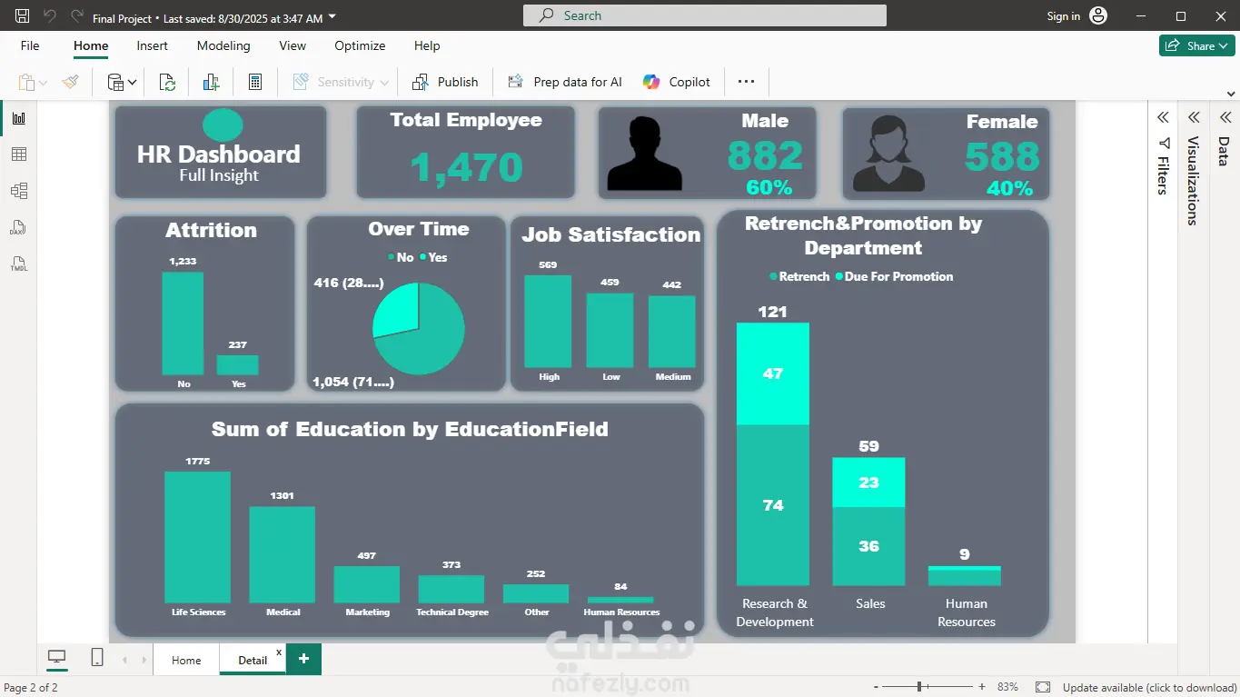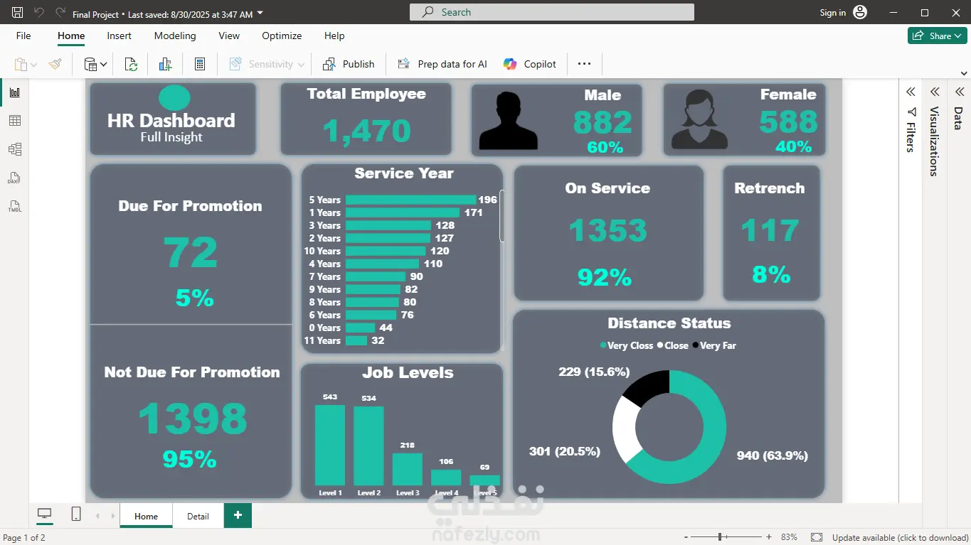 تقرير عام الى مدير الموارد البشريه Power Bi