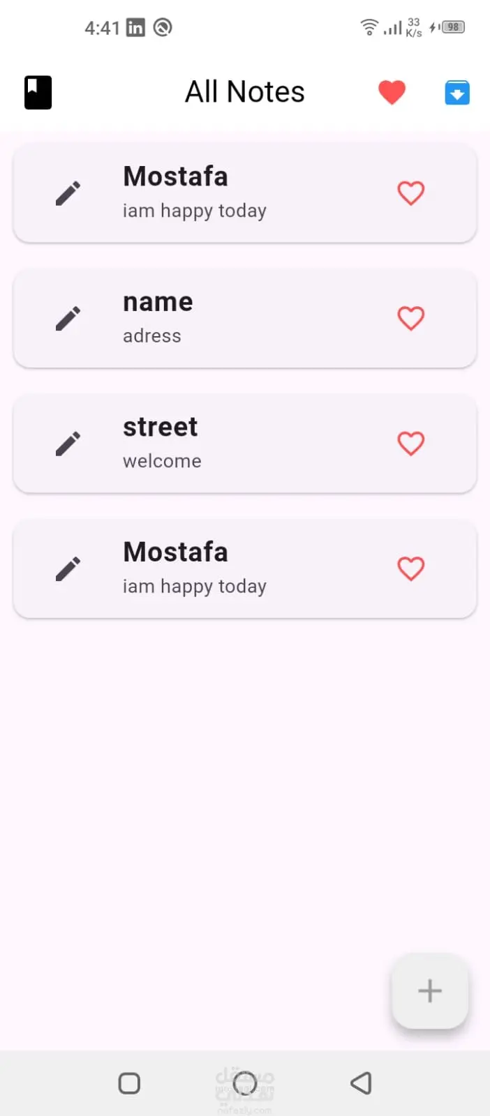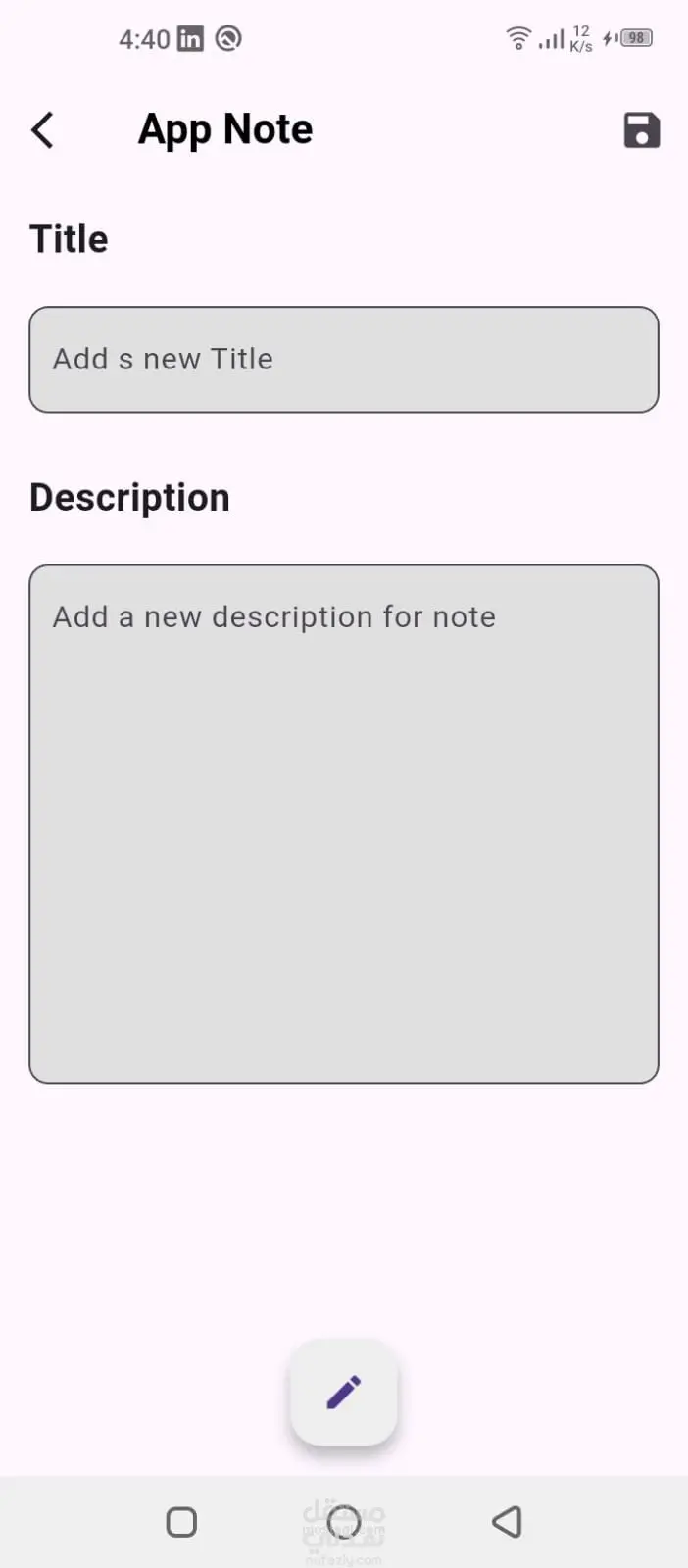 طوّرت تطبيق تدوين ملاحظات يتيح للمستخدمين إنشاء الملاحظات وتعديلها وحذفها. يقوم التطبيق بتخزين البيانات محليًا على الجهاز، مما يضمن الوصول إلى الملاحظات حتى في حالة عدم الاتصال بالإنترنت.