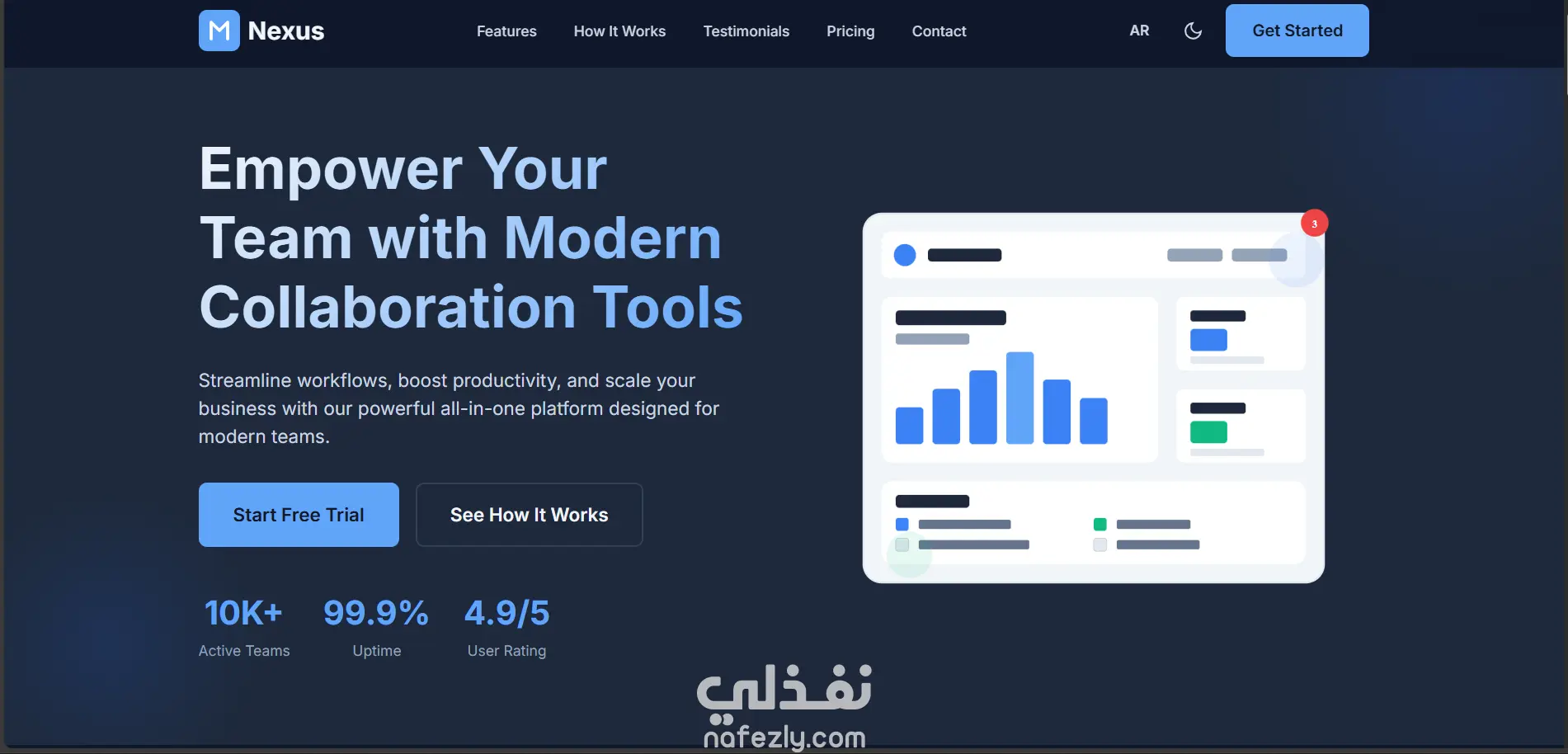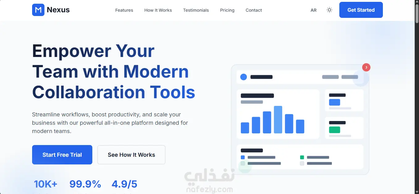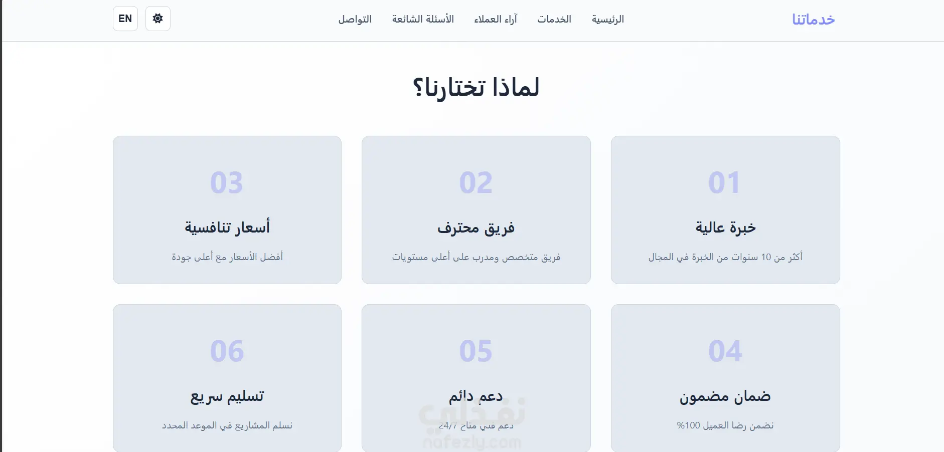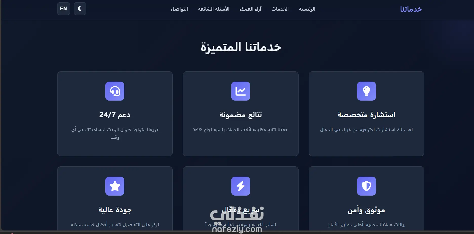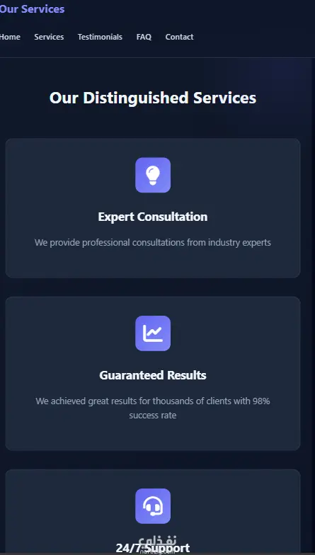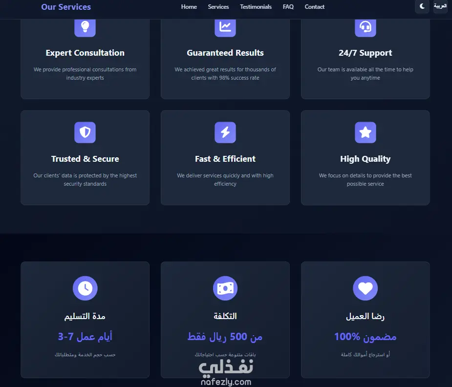 صفحة هبوط حديثة وجذابة مع تصميم داكن وأنيميشنات سلسة. صفحة واحدة فقط تركز على تحويل الزوار إلى عملاء. تصميم نظيف وحديث واجهة مستخدم سهلة الاستخدام ألوان داكنة متناسقة تصميم متوافق مع جميع الأجهزة أنيميشنات سلسة انتقالات جميلة عند التمرير حركات ديناميكية تجذب الانتباه تأثيرات hover محسّنة متوافق مع الجوال تصميم متجاوب (Responsive) يعمل بشكل ممتاز على جميع الأجهزة سهل الاستخدام على الموبايل