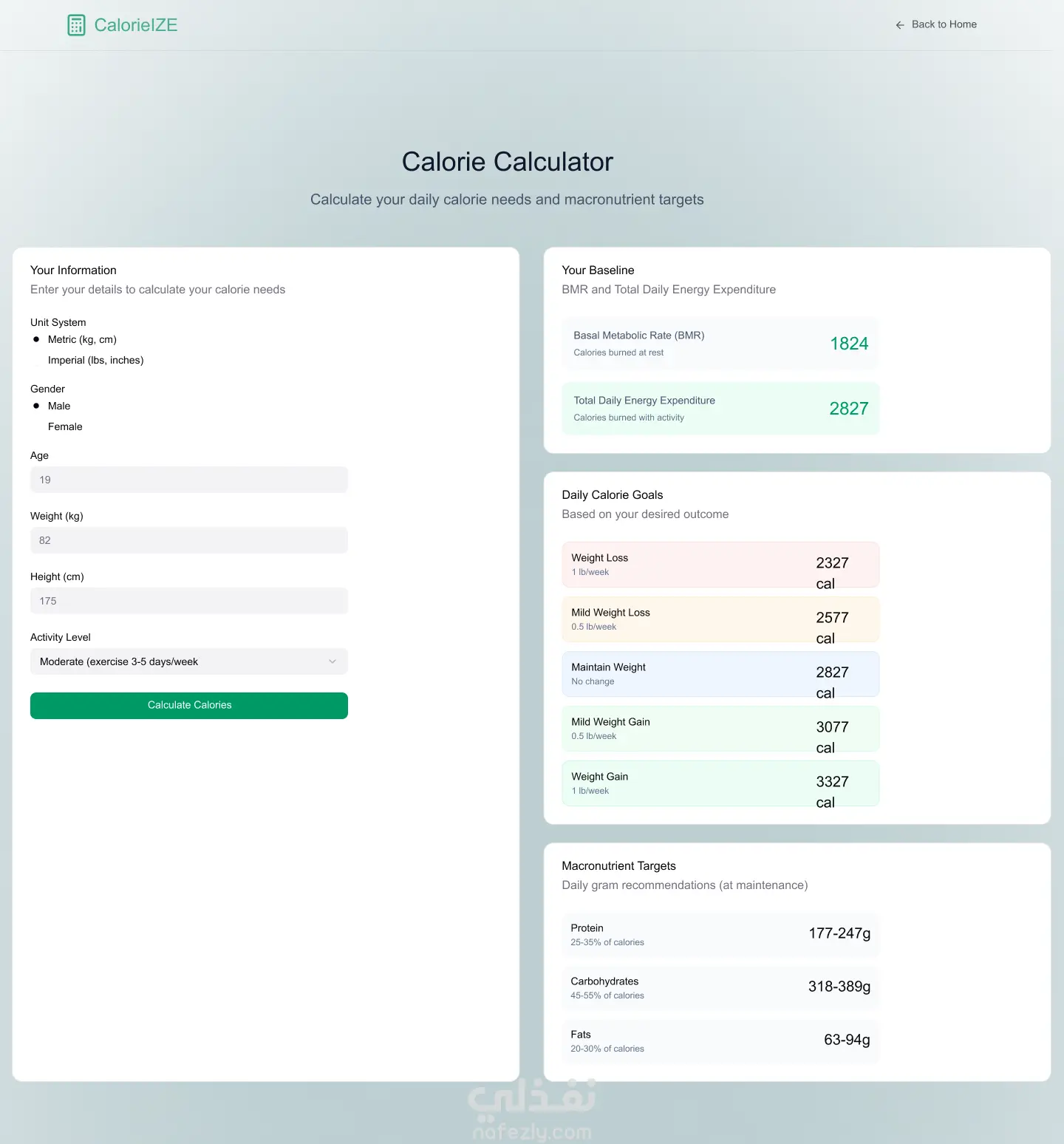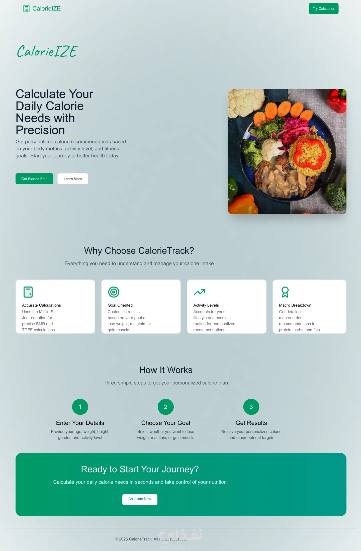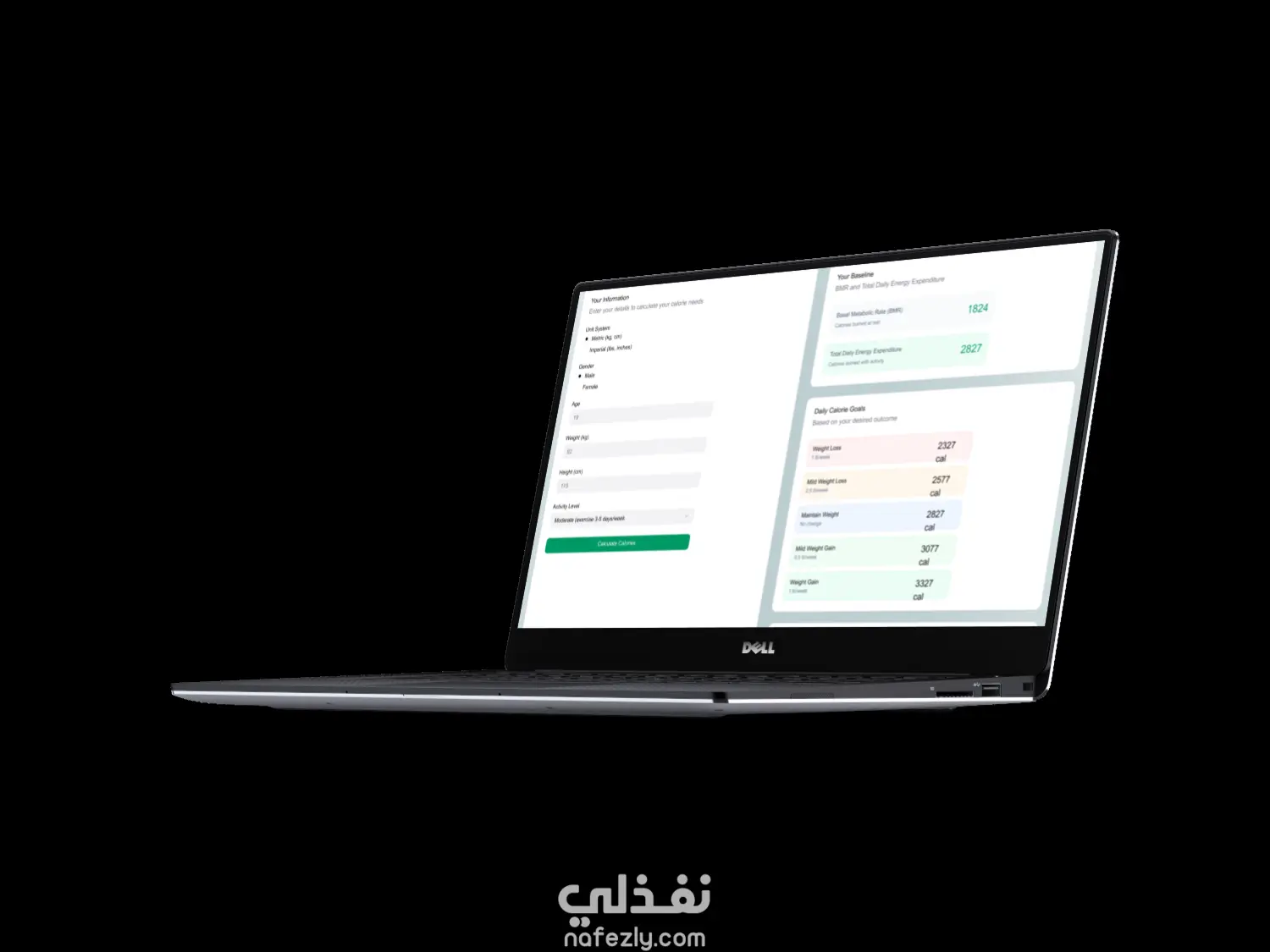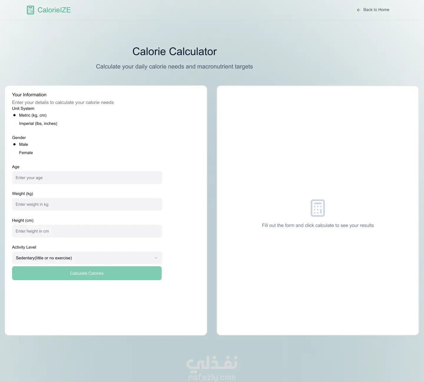 موقع لحساب الكالوري متكون من ثلاث صفحات