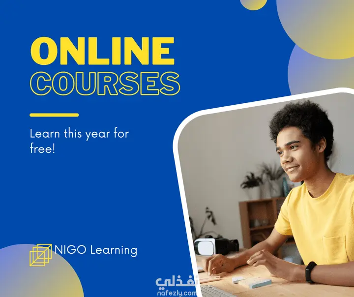التسلسل البصري: التركيز على العنوان الرئيسي (Online Courses) بخط عريض وواضح لضمان وصول الرسالة فوراً.