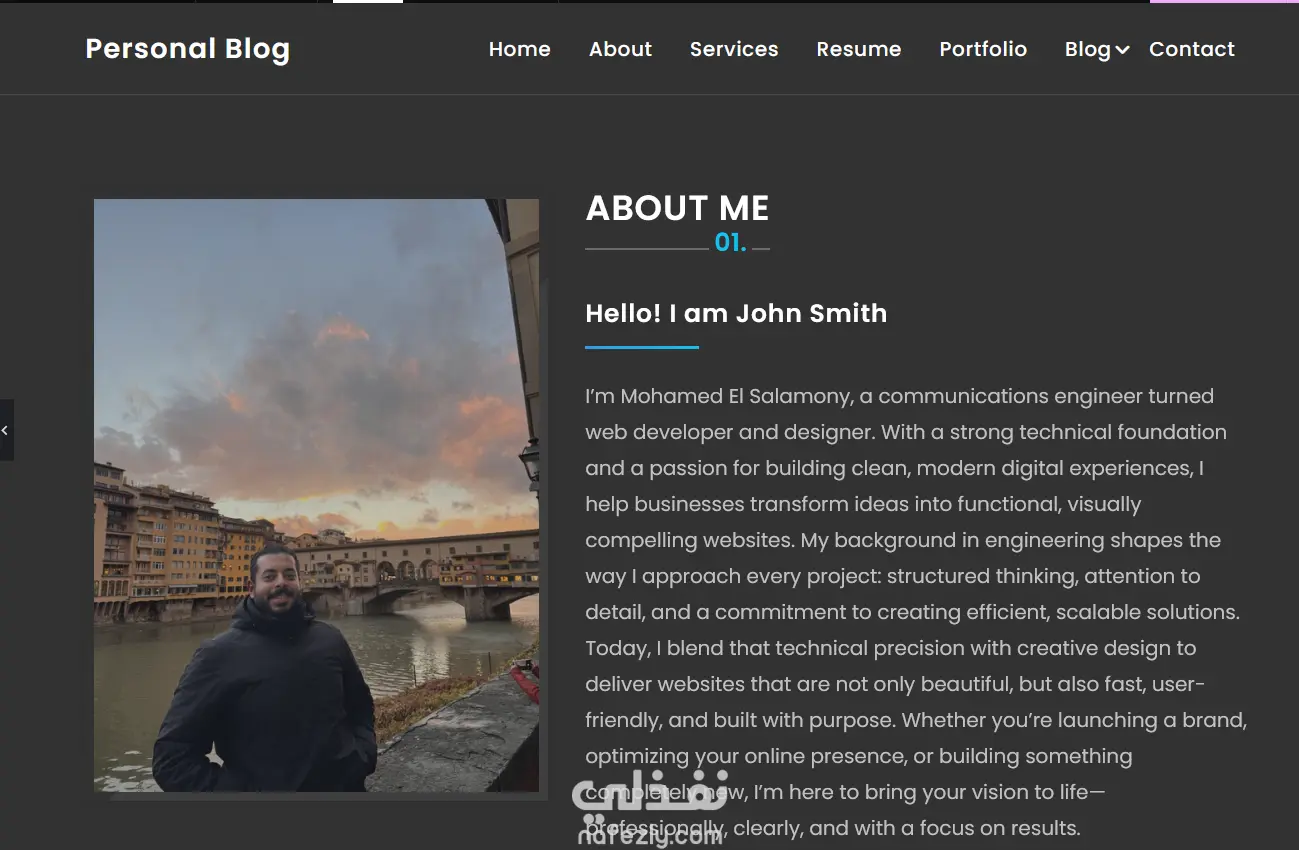 موقع تعريفي لنفسي قمت بتكوينه بواسطة Wordpress