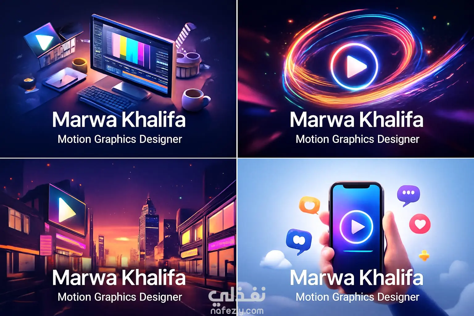 قمت بتصميم مجموعة من الاغلفة الاحترافية المخصصة لمجال الموشن جرافيك مع التركيز علي الالوان الحيوية و الاستال العصري