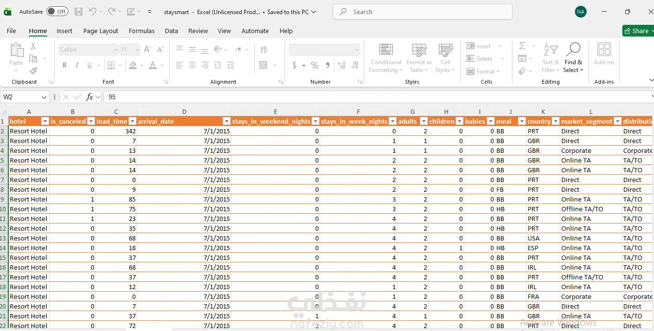 تحليل وتنظيف بيانات حجوزات الفنادق وتصميم داش بورد تفاعلية