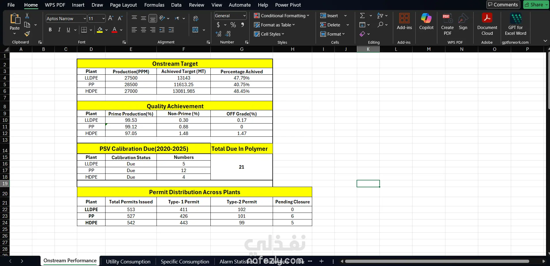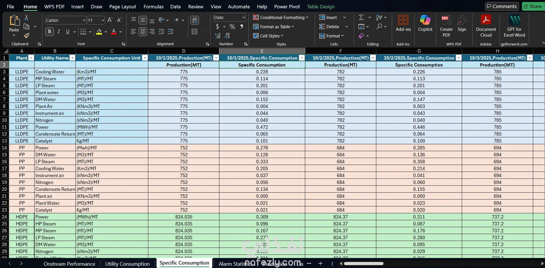 مراقبة استهلاك المرافق الأساسية للعمليات (مثل Cooling Water, Plant Air, HP Steam, Nitrogen).