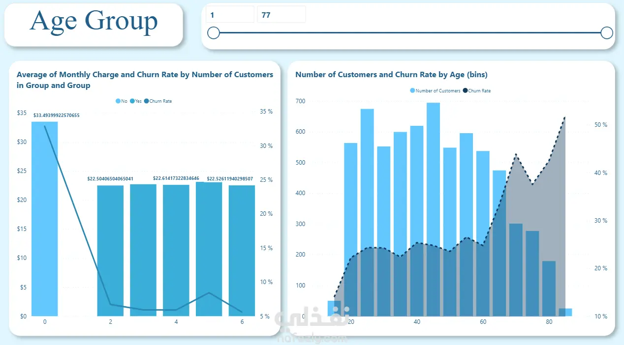 معدلات ترك العملاء حسب الفئة العمرية والجنس.