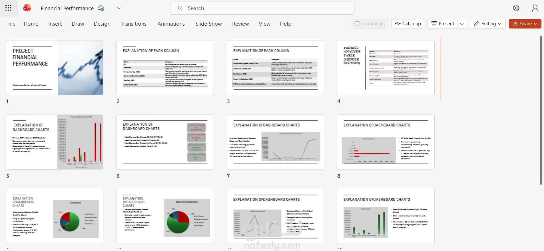 قدّمت عرضًا ماليًا احترافيًا باستخدام PowerPoint يجمع بين الدقة التحليلية والتصميم البصري الجذاب. ركّزت في هذا العمل على تبسيط البيانات المالية المعقدة وتحويلها إلى شرائح واضحة وسهلة الفهم، مع ضمان الحفاظ على الهوية البصرية والتنظيم المنهجي للمحتوى. محتوى وتفاصيل العرض: تحليل شامل للأداء المالي باستخدام جداول ورسوم بيانية تفاعلية. عرض مؤشرات رئيسية مثل الإيرادات، المصروفات، الربحية، ومعدلات النمو. تصميم شرائح متناسق احترافي مع استخدام ألوان corporate مناسبة. تحويل البيانات الرقمية إلى رؤى واضحة تساعد على اتخاذ القرارات. تبسيط الأرقام الكبيرة وإظهار أهم الرسائل المالية في شكل نقاط مختصرة. إبراز الاتجاهات Trends باستخدام Line charts و Bar charts و Pie charts. تنظيم الشرائح بشكل منطقي يبدأ من الملخص المالي ثم التحليل ثم التوصيات. مميزات العمل: عرض بصري جذاب وسهل القراءة. فهم عميق للبيانات المالية وطريقة سردها. تنسيق احترافي يناسب الشركات والتقارير الرسمية. إمكانيات تخصيص العرض بالكامل حسب حاجة العميل.