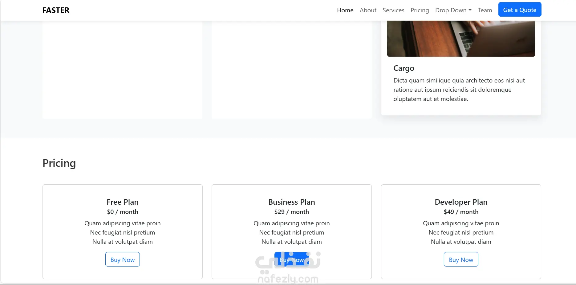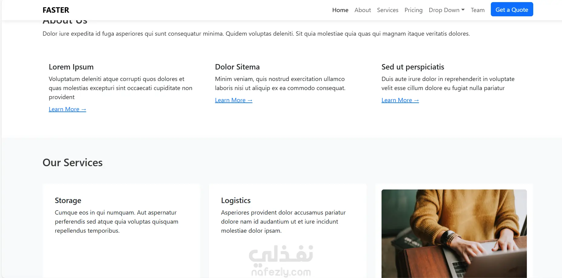 موقع Faster مناسب كشكل تعريفي لأي شركة شحن أو خدمات لوجستية تبحث عن تصميم نظيف وسهل ومباشر.