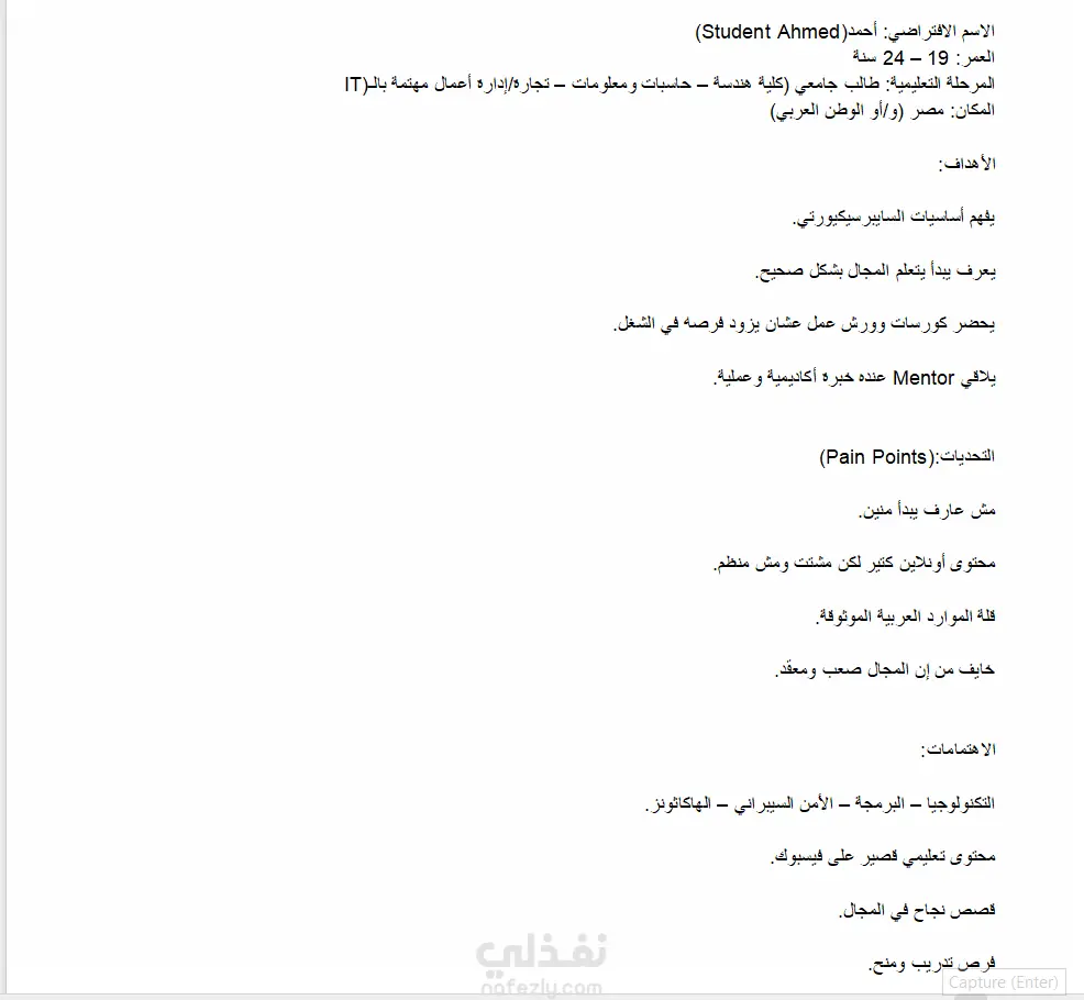 عمل buyer persona احترافية لمستشار في الأمن السيبراني بعد تحديد الشرائح المستهدفة