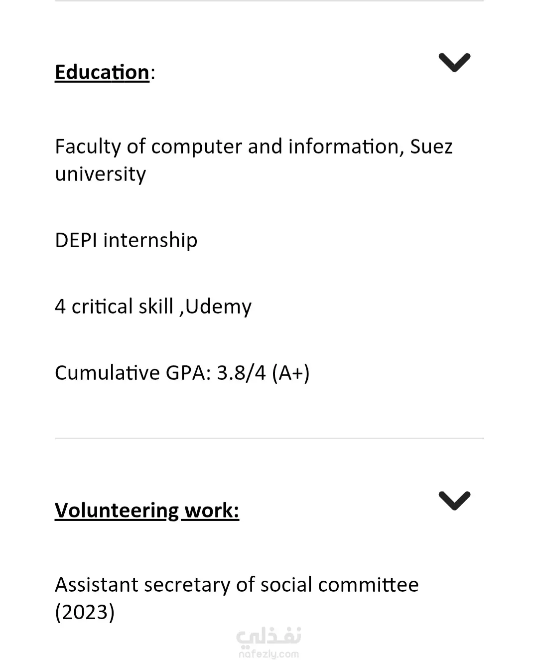 ترتيب ذكي للأقسام بحيث يظهر نبذة التعريف، المهارات، الخبرات، التعليم، والروابط المهنية بطريقة مرتبة وسهلة التصفح.