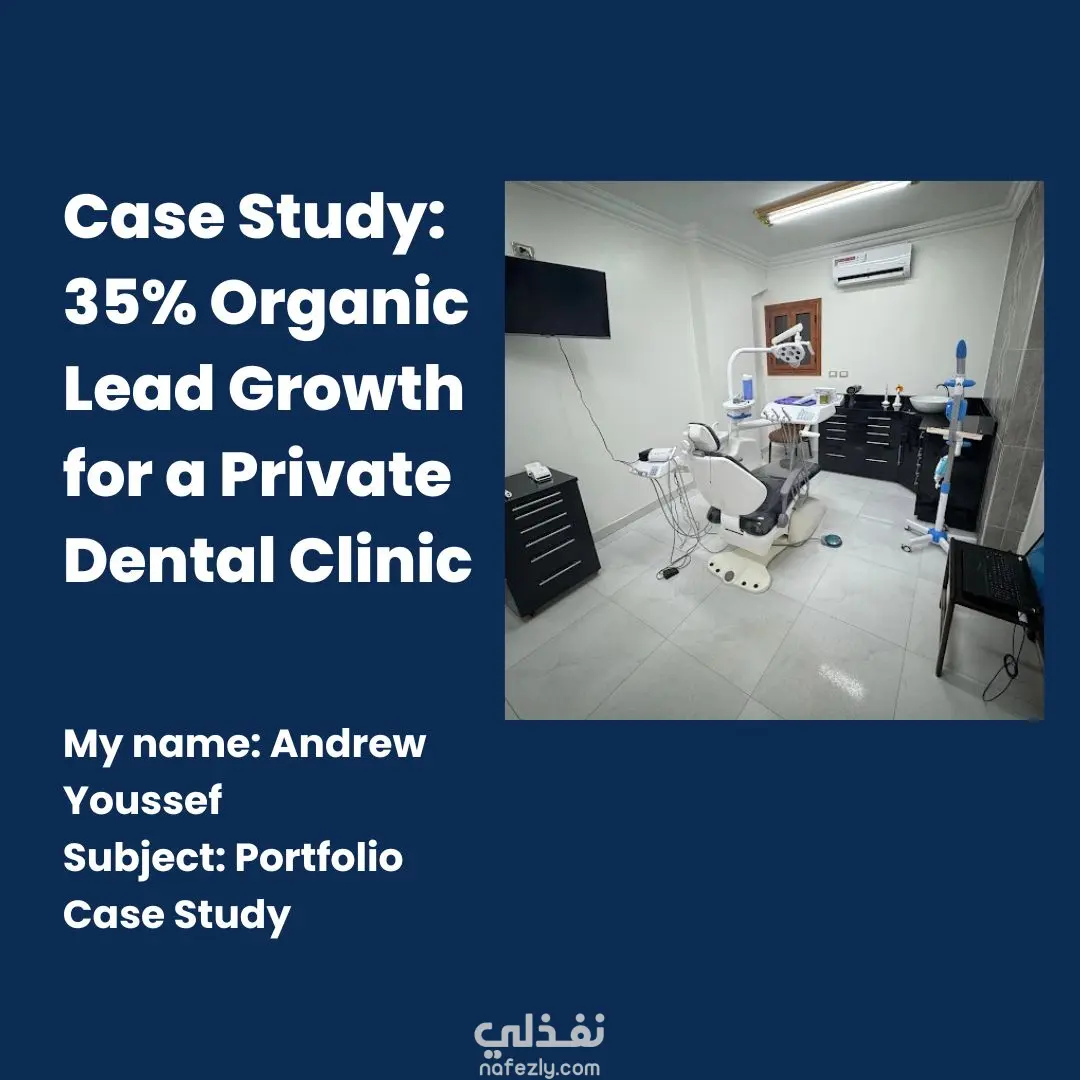 تم تنفيذ استراتيجية نمو عضوي كاملة لعيادة أسنان خاصة في منطقة نامية بالقاهرة بهدف بناء حضور رقمي موثوق وجذب المرضى دون إنفاق إعلاني. ركز العمل على تحسين الظهور المحلي، بناء ثقة المجتمع، وتطبيق نظام محتوى وتعليم فعال يدعم تحقيق نتائج قابلة للقياس.
