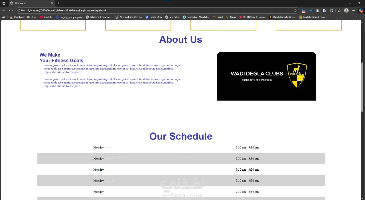 تنفيذ تاسك لصفحة نادي وادي دجله