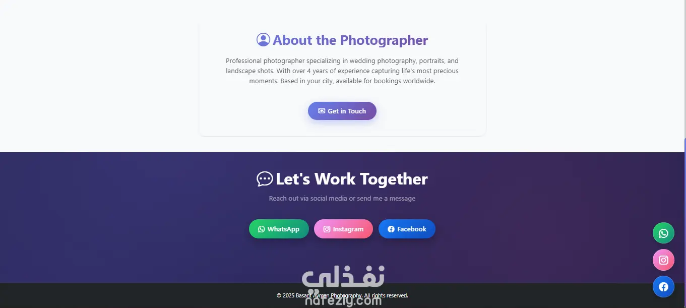 يسعدني مشاركة أحد مشاريعي الأخيرة: صفحة هبوط (Landing Page) احترافية لمصوّر فوتوغرافي!