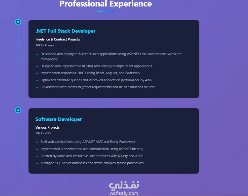 قمت بتصميم وتطوير موقع ويب باستخدام تقنيات حديثة، حيث قمت بإنشاء واجهة مستخدم سهلة وبسيطة، مع الاهتمام بتجربة المستخدم وتنسيق المحتوى بشكل منظم. الموقع يوضح (الخدمات/المحتوى/الأقسام) بشكل متكامل، ويعكس ما اسطيع ان افعله