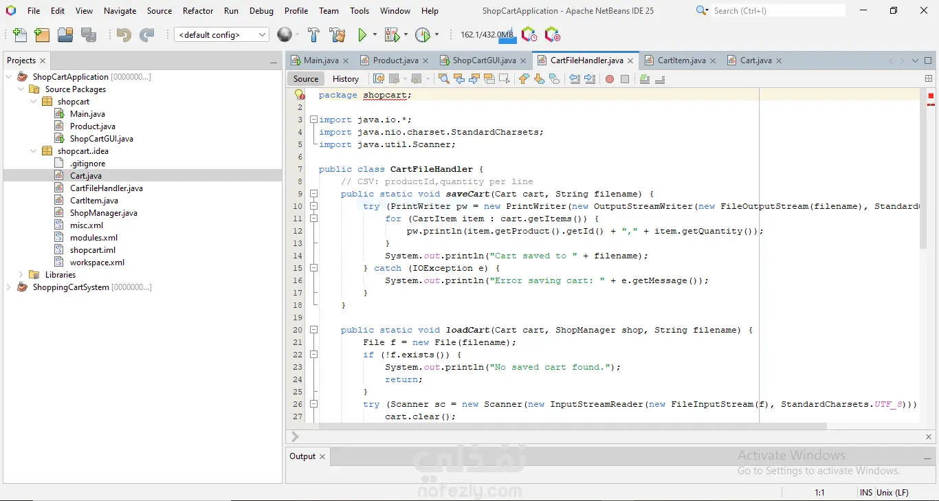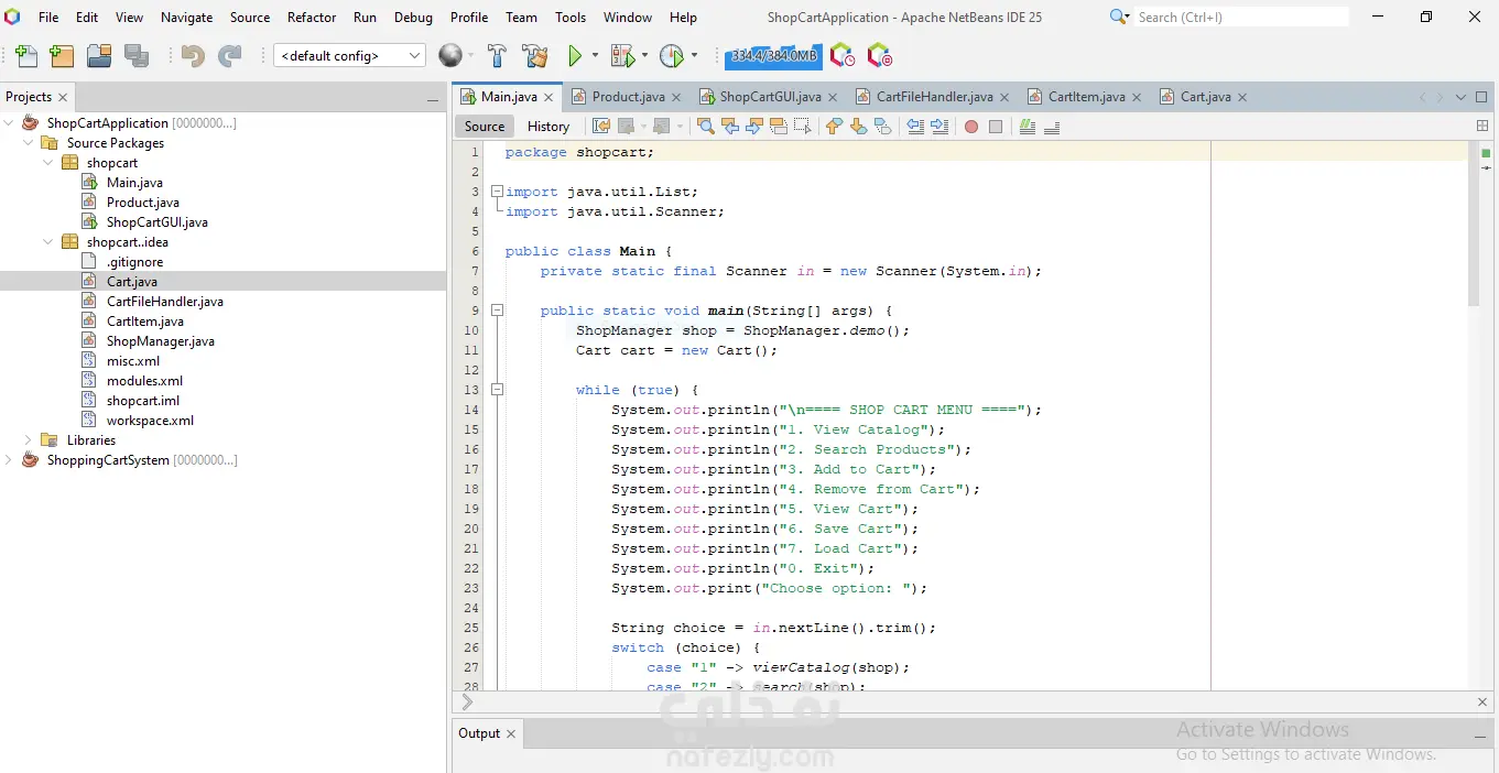 مشروع اختبار نظام سلة التسوق الإلكتروني بلغة Java (ShopCartApplication)