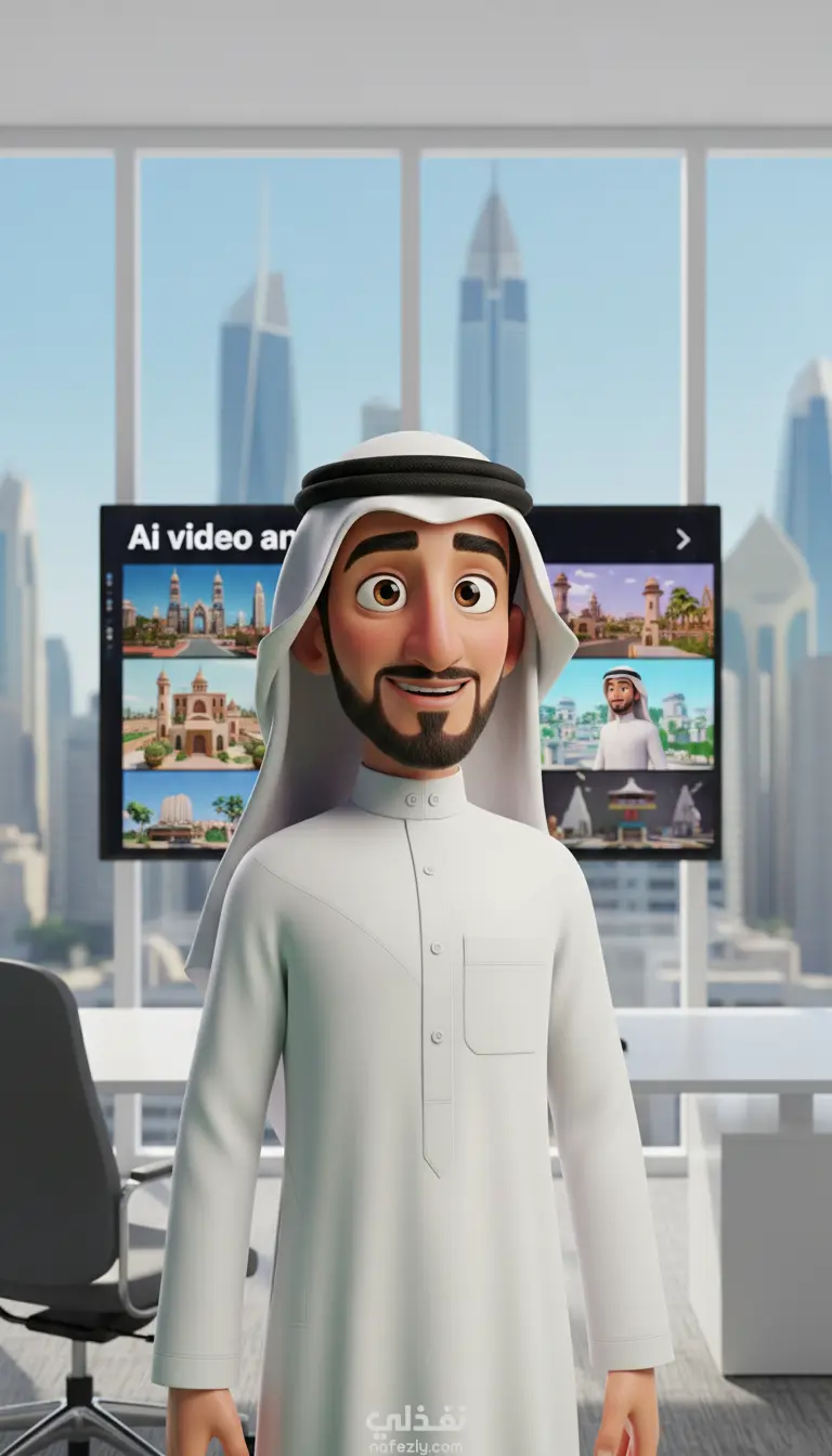تم تصميم الفيديو ومشاهد ستايل ثري دي انميشن كرتون مع تعليق صوتي بالذكاء الاصطناعي اللهجه الخليجيه