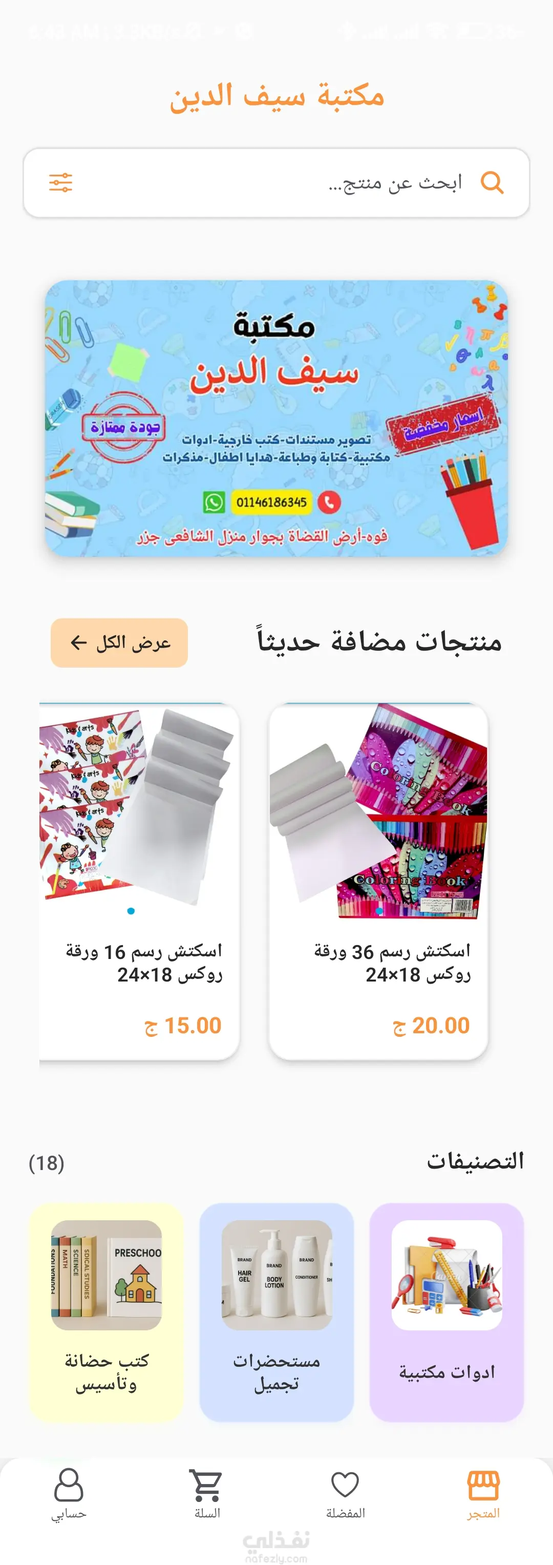 تطبيق مكتبة سيف الدين لبيع الأدوات المكتبية والأدوات الدراسية