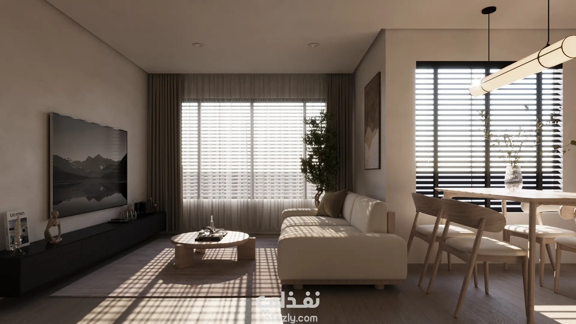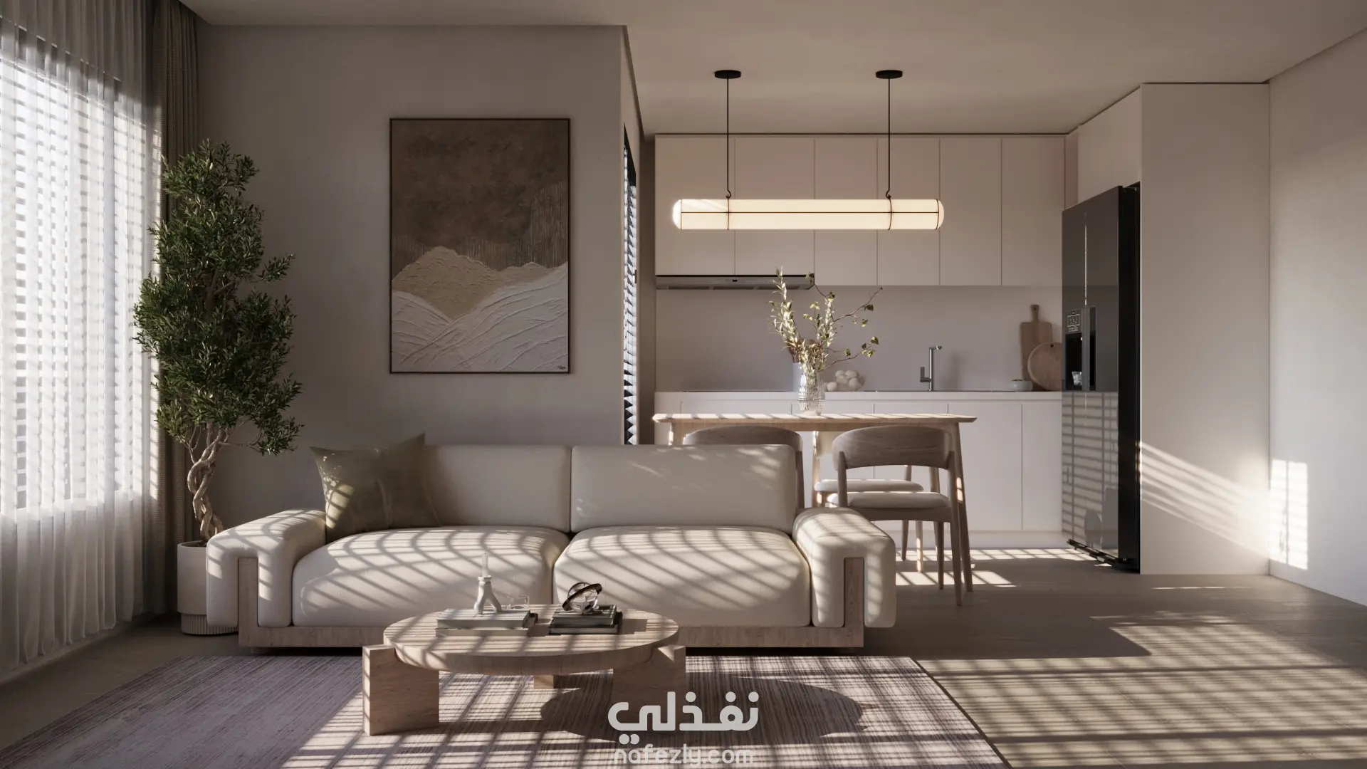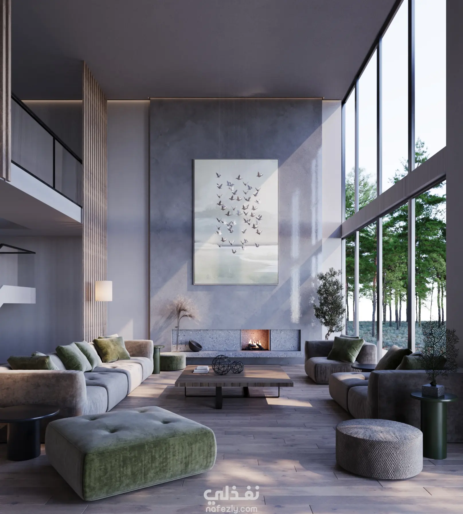 تصاميم استقبال داخلية للمنازل تصاميم داخلية حديثة تجمع بين الأناقة العملية والراحة البصرية. تم العمل على تنسيق ألوان هادئة إضافةً إلى توزيع أثاث مدروس يحقق الانسجام بين الفراغ السفلي ومنطقة الميزانين العلوية. يشمل التصميم: التصميم الداخلي بشكل كامل + مخطط للفرش