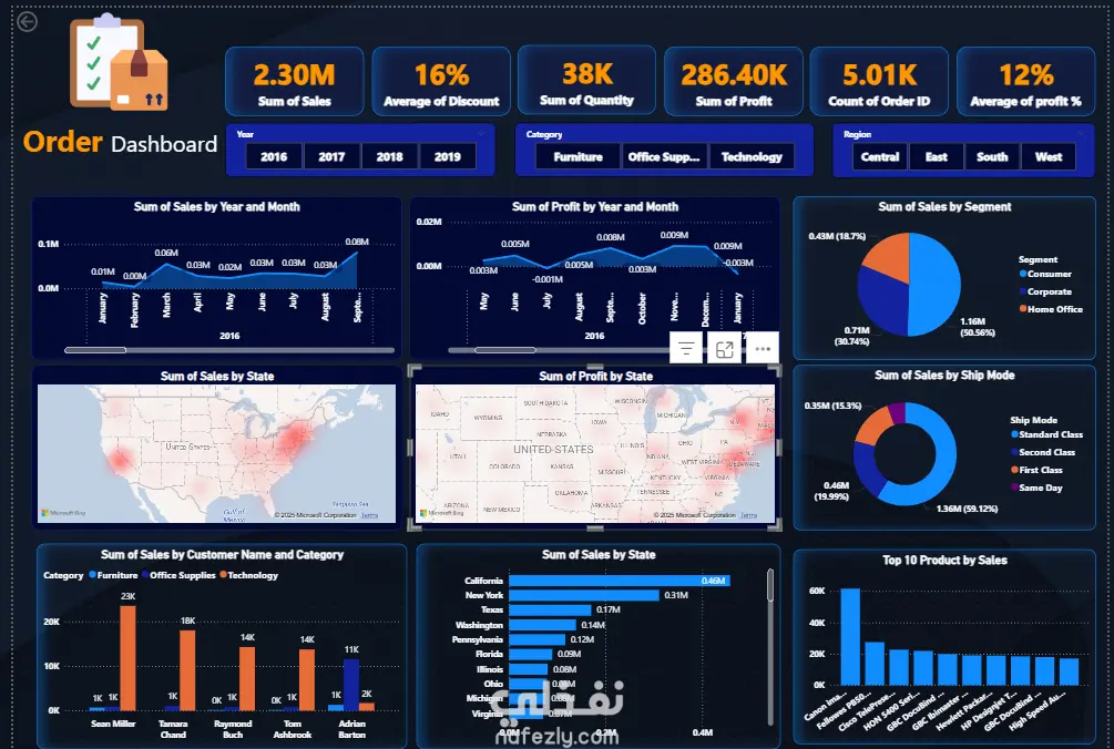 تصميم لوحة تحكم تفاعلية لتحليل الطلبات والمبيعات باستخدام Power BI