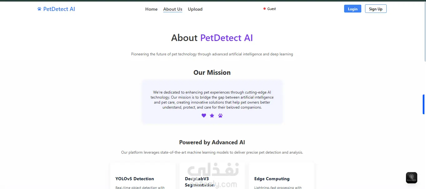 تطبيق ذكي لاكتشاف الحيوانات باستخدام الذكاء الاصطناعي (Pet Detection App) الوصف: مشروع متكامل قمت بتطويره لتطبيق يعتمد على الذكاء الاصطناعي والرؤية الحاسوبية (Computer Vision) لاكتشاف الحيوانات في الصور بدقة عالية. يستخدم التطبيق نموذج Deep Learning مبني بتقنيات Python, TensorFlow, وOpenCV لتحليل الصور والتعرّف تلقائيًا على نوع الحيوان. تم بناء الواجهة الأمامية (Frontend) باستخدام React.js بتصميم عصري وواجهة استخدام مريحة (UI/UX) تضمن تجربة سلسة للمستخدم، أما الخلفية (Backend) فتم تطويرها باستخدام Node.js وExpress.js مع قاعدة بيانات SQL liteلإدارة الصور والنتائج بمرونة. التطبيق يُظهر قدرتي على الدمج بين الذكاء الاصطناعي وتطوير الويب لبناء أنظمة ذكية تفاعلية يمكن استخدامها في مشاريع حقيقية مثل الأمن، مراقبة الحيوانات، أو التطبيقات البيئية.