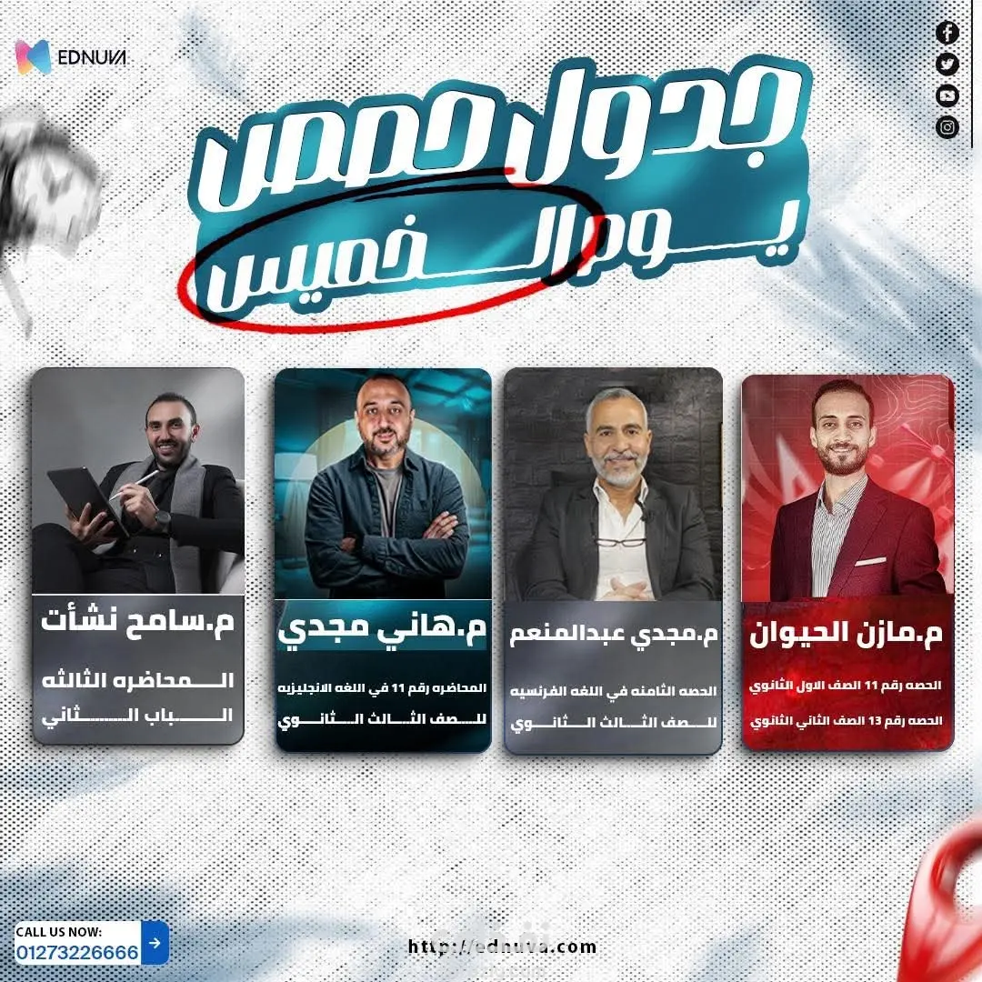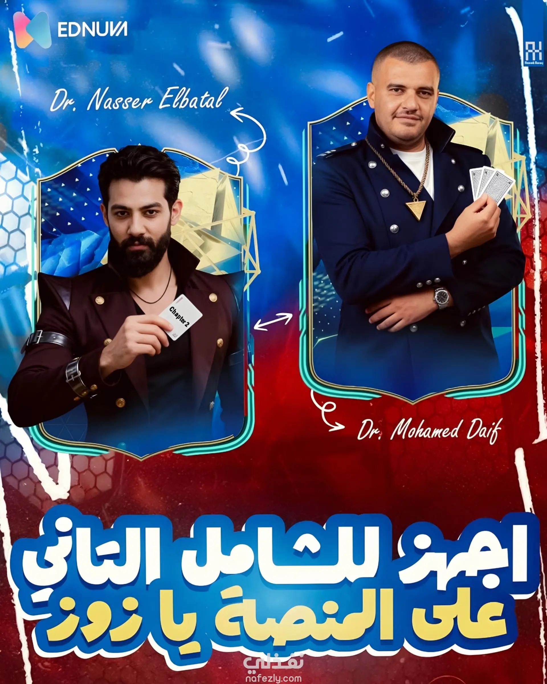 تصميم حملة إعلانية بصرية متكاملة لمنصة تعليمية تضم نخبة من المدرسين. ده مش مجرد بوستر حصة، دي "تجربة" كاملة. في مشروع تصميمات منصة Ednuva، كان الهدف نغير نظرة الطالب للبوستر التعليمي التقليدي. بدل ما يشوف "ميعاد حصة"، يشوف "تريلر فيلم" بطله هو مدرسه المفضل ، تكسر حاجز الملل التقليدي لدى الطلاب وتجذب انتباه الجيل الجديد (Gen Z). (The Challenge): كيف نحول مواد علمية دسمة (أحياء، كيمياء، لغات) إلى بوسترات تجذب العين وتنافس المحتوى الترفيهي على السوشيال ميديا، مع الحفاظ على وقار المدرس والهوية الخاصة بالمنصة. (Creative Concept): اعتمدت في هذه التصميمات على أسلوب "Cinematic Education"