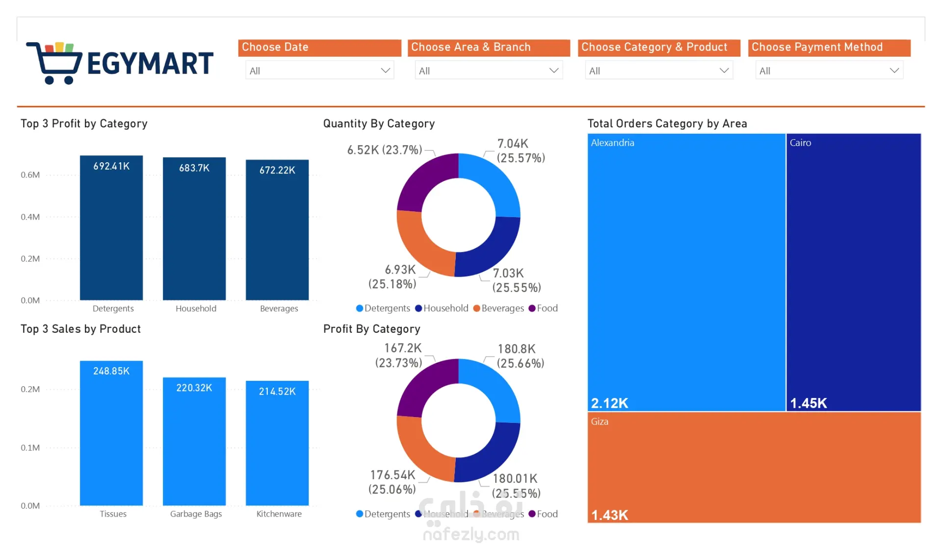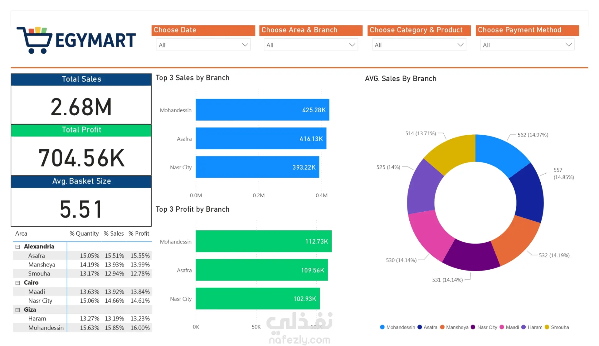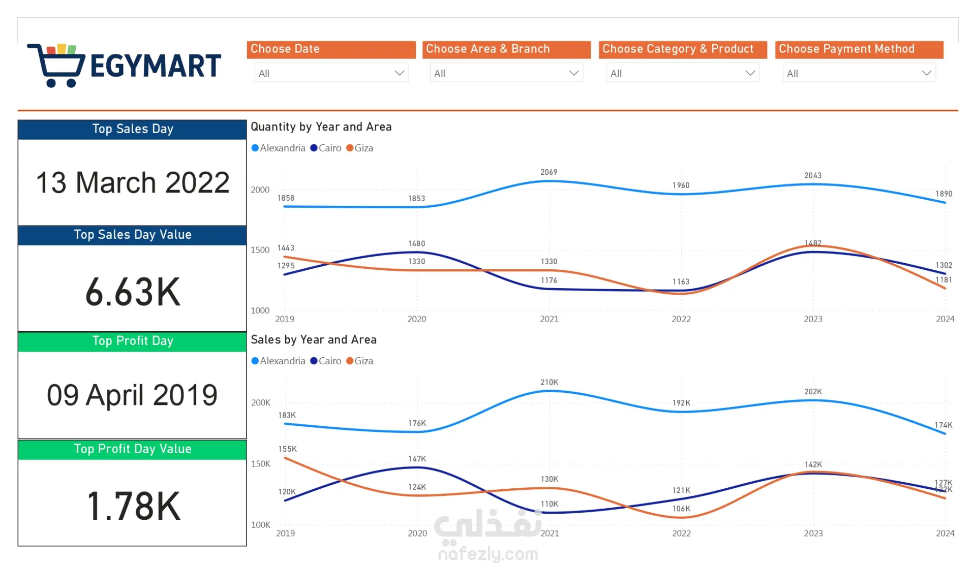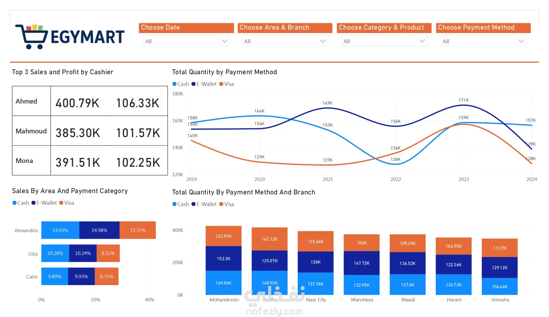 قمت بتصميم وتطوير Dashboard تفاعلي لشبكة تجارية مصرية (EgyMart) تنتشر في عدة فروع على مستوى الجمهورية. الهدف من المشروع كان تحويل بيانات المبيعات الخام من الفترة 2019–2024 إلى رؤى قابلة للتطبيق تساعد الإدارة في اتخاذ قرارات سريعة وفعّالة. ومرفق فيديو بجانب الصور لتوضيح التصميمات وطرق التفاعل مع الDashboards ومن أبرز مميزاتهم: - ملخص تنفيذي يعطي لمحة شاملة عن الأداء العام للشركة. - تحليل أداء الفروع لمقارنة المبيعات والكفاءة بين مختلف المواقع. - رؤى المنتجات لمعرفة الأكثر ربحية والأكثر مبيعًا. - أداء الكاشير لتقييم فرق العمل وتحسين العمليات اليومية. - تحليل الموسمية والاتجاهات الزمنية لفهم تقلبات المبيعات واتخاذ قرارات استراتيجية دقيقة. هذا المشروع يوضح كيف يمكن استخدام Power BI لتحويل البيانات اليومية المعقدة إلى أداة قوية لاتخاذ القرار، مما يمكّن الإدارة من تحسين المبيعات، متابعة الأداء، وتحقيق نمو مستدام للشركة.