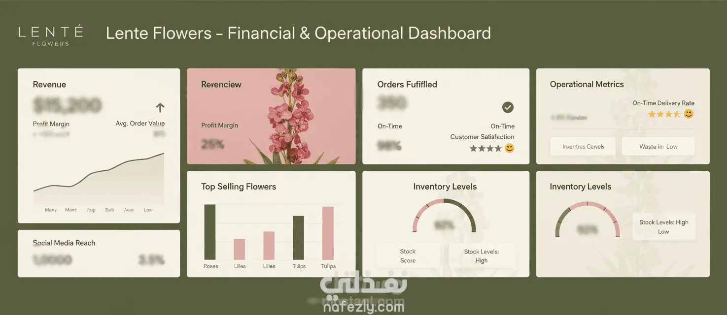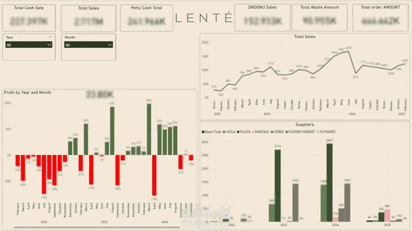 تحليل البيانات المالية وبناء Dashboard لمشروع محل زهور لينتي في قطر "LINTE" علي موقع مستقل بتقيم 5 نجوم